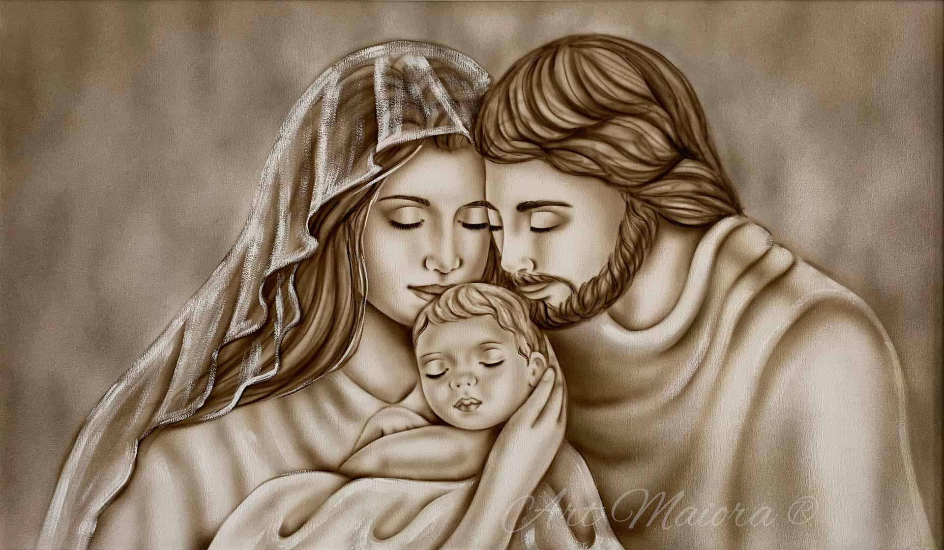 Quadro dipinto a mano “Amore Infinito”, 110x65cm, finitura tortora caldo, senza cornice.