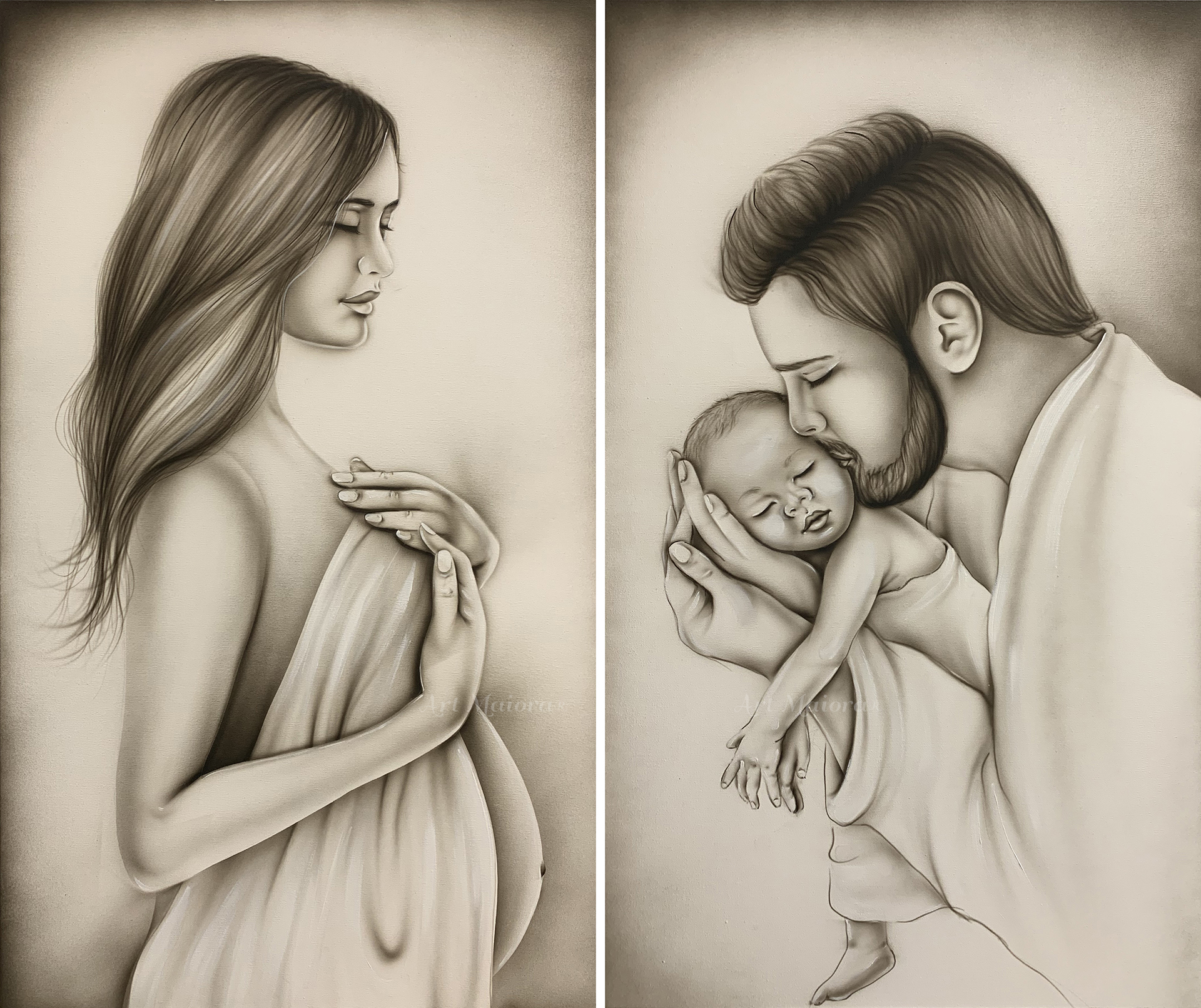 ATTESA (Set due pezzi) CON DIMENSIONE TELA (2 PEZZI) DI 110 X 65 cad. dipinto su tela realizzato a mano cm con FINITURA VARIANTE TORTORA Senza Cornice