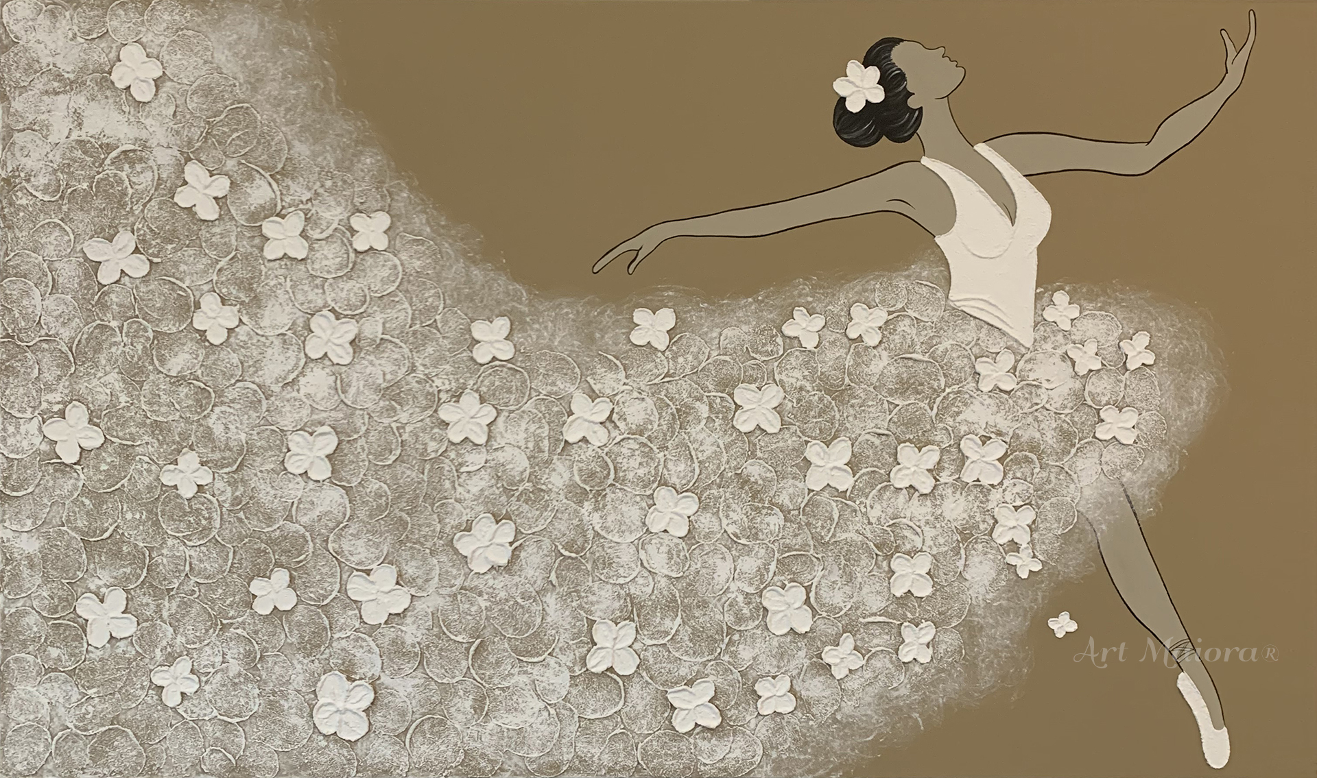 Quadro dipinto a mano “Ballerina”, 160x110cm, finitura tortora caldo, senza cornice.
