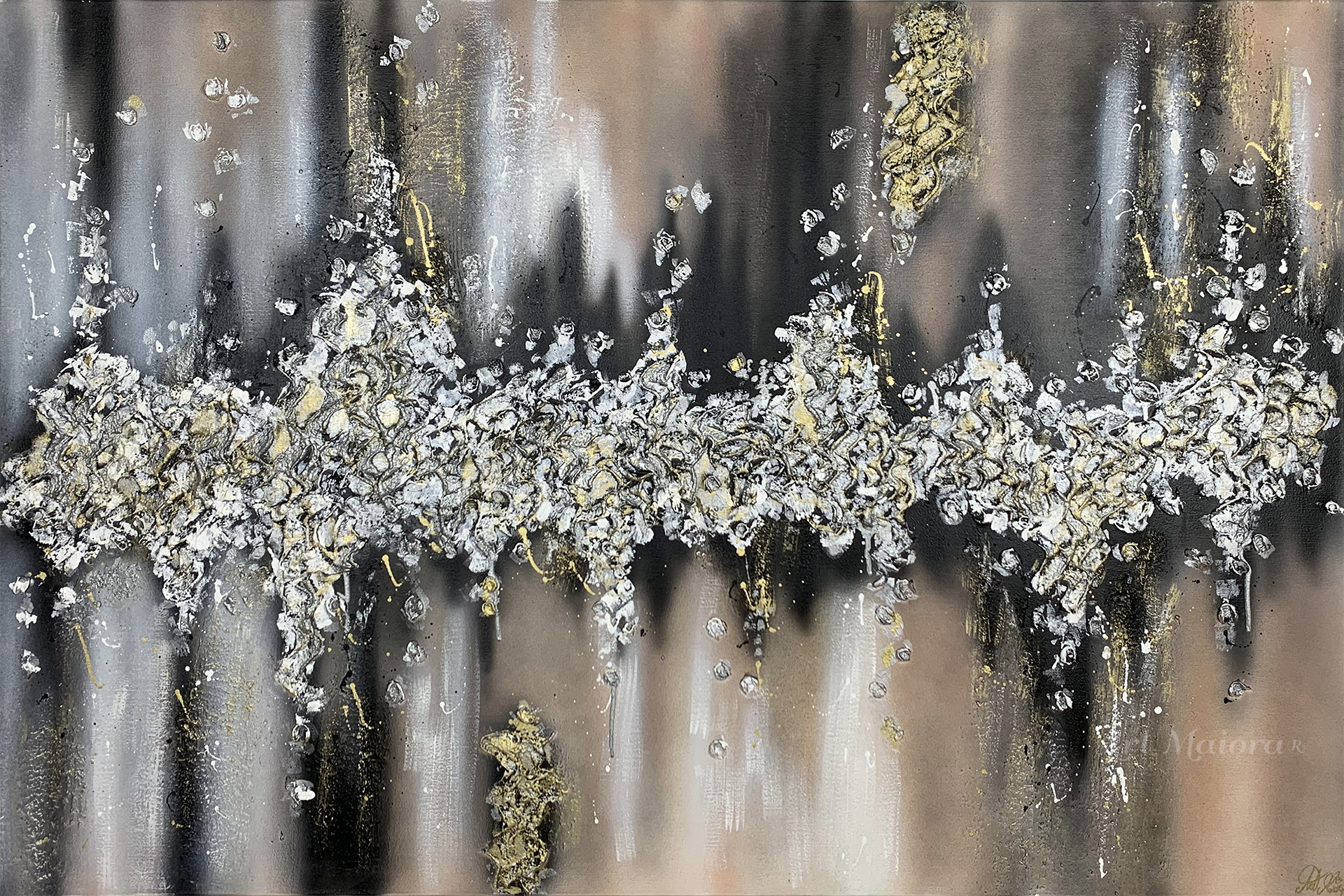 BATTITO CON DIMENSIONE TELA DI 150 X 80 cm con FINITURA VARIANTE ORO E ARGENTO Senza Cornice. dipinto su tela realizzato a mano