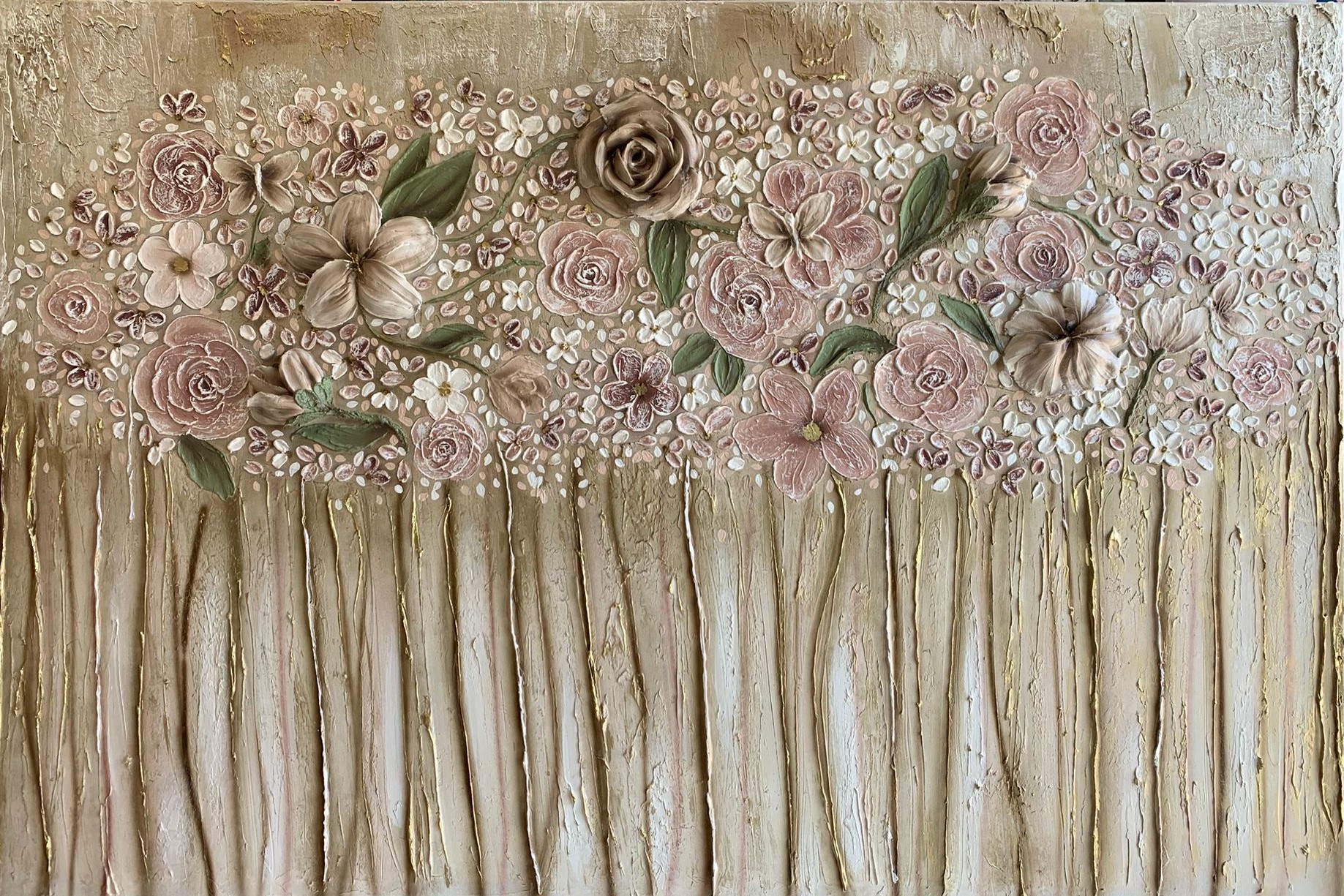 Quadro dipinto a mano “Colore In Fiore”, 60x60cm, finitura tradizionale, senza cornice.