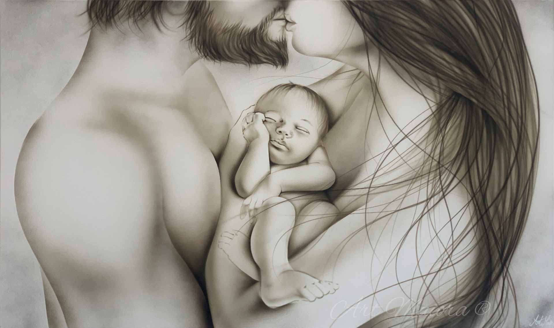 Quadro dipinto a mano “Cuore”, 110x65cm, finitura tortora, senza cornice.