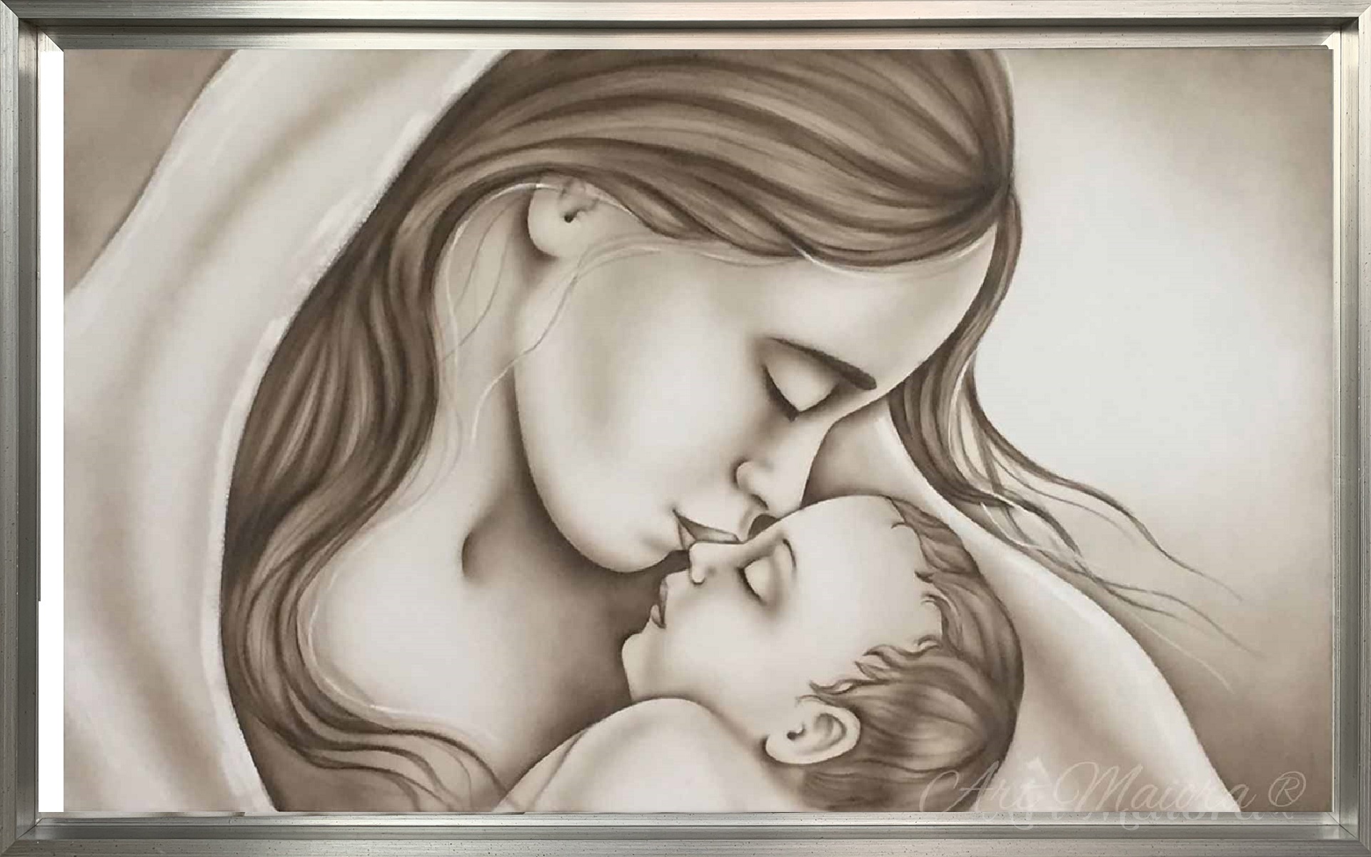 DOLCEZZA CON DIMENSIONE TELA DI 110 X 65 cm con FINITURA VARIANTE TORTORA in abbinamento la CORNICE AD L IN ARGENTO . dipinto su tela realizzato a mano La dimensione finale del dipinto è 120 X 75 cm (larghezza x altezza)