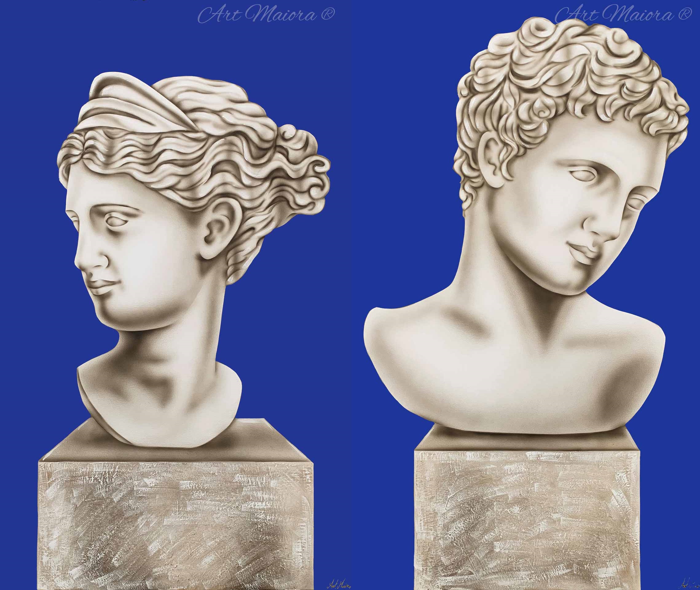 Quadro dipinto a mano “Eterno Amore”, 150x80cm, finitura blue, senza cornice.