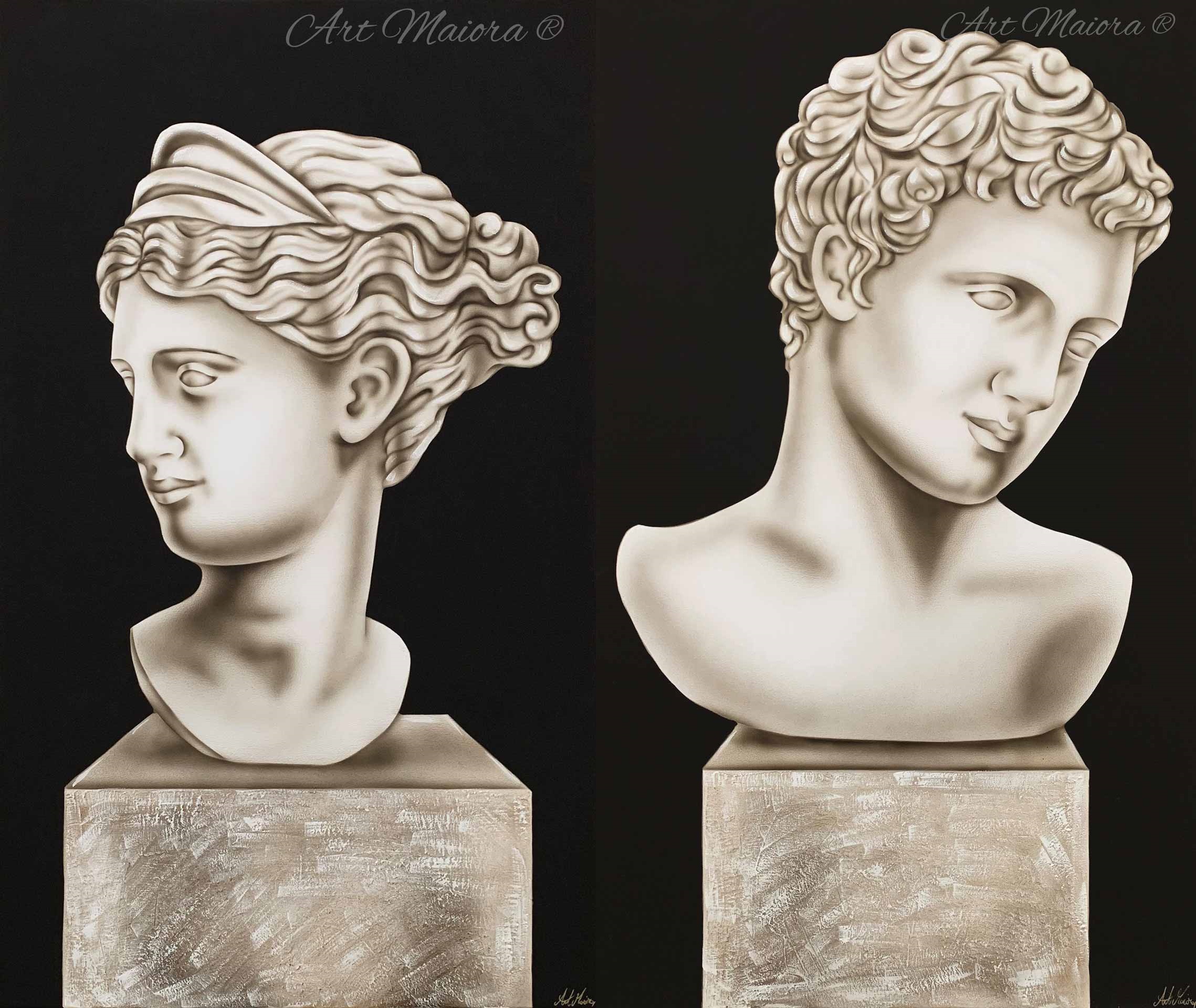 ETERNO AMORE CON DIMENSIONE TELA DI 150 X 80 cm con FINITURA VARIANTE FONDO BRUNO E BUSTI TORTORA Senza Cornice. dipinto su tela realizzato a mano