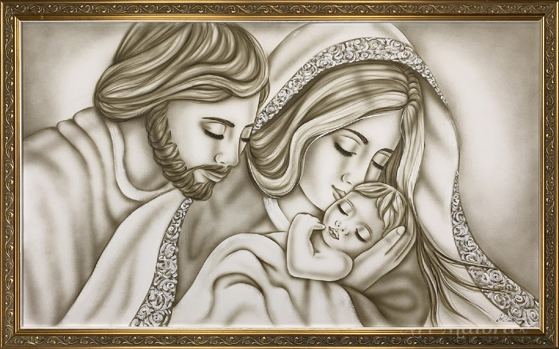 FORZA CON DIMENSIONE TELA DI 110 X 65 cm con FINITURA VARIANTE TORTORA CALDO CON DECORI in abbinamento la CORNICE DECAPE ORO. dipinto su tela realizzato a mano La dimensione finale del dipinto è 120 X 75 cm (larghezza x altezza)
