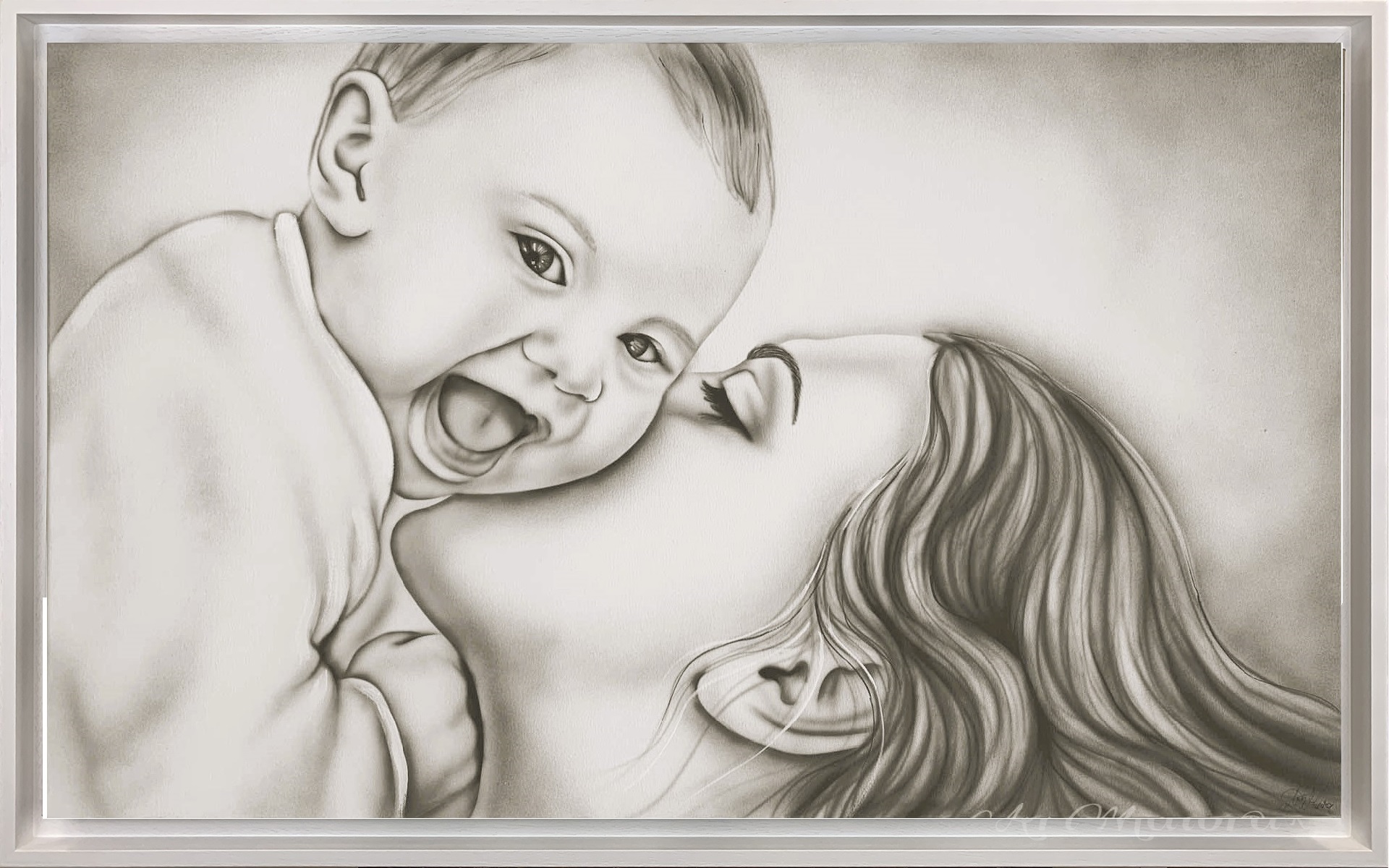 Gaia CON DIMENSIONE TELA DI 110 X 65 cm con FINITURA VARIANTE TORTORA in abbinamento la CORNICE AD L BIANCA PORO APERTO. dipinto su tela realizzato a mano La dimensione finale del dipinto è 120 X 75 cm (larghezza x altezza)