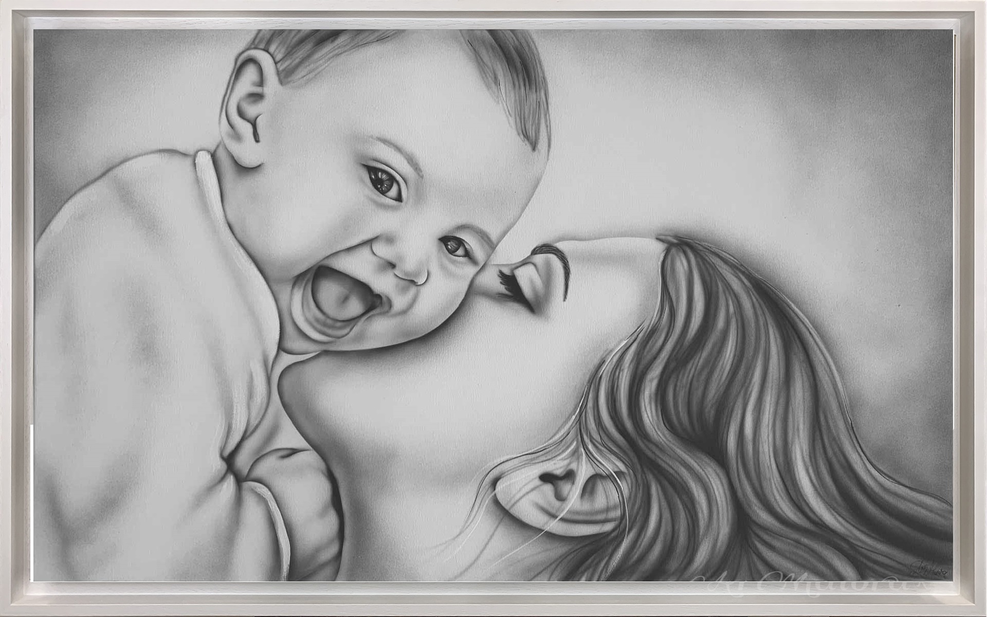 Gaia CON DIMENSIONE TELA DI 110 X 65 cm con FINITURA VARIANTE GRIGIO in abbinamento la CORNICE AD L BIANCA PORO APERTO. dipinto su tela realizzato a mano La dimensione finale del dipinto è 120 X 75 cm (larghezza x altezza)