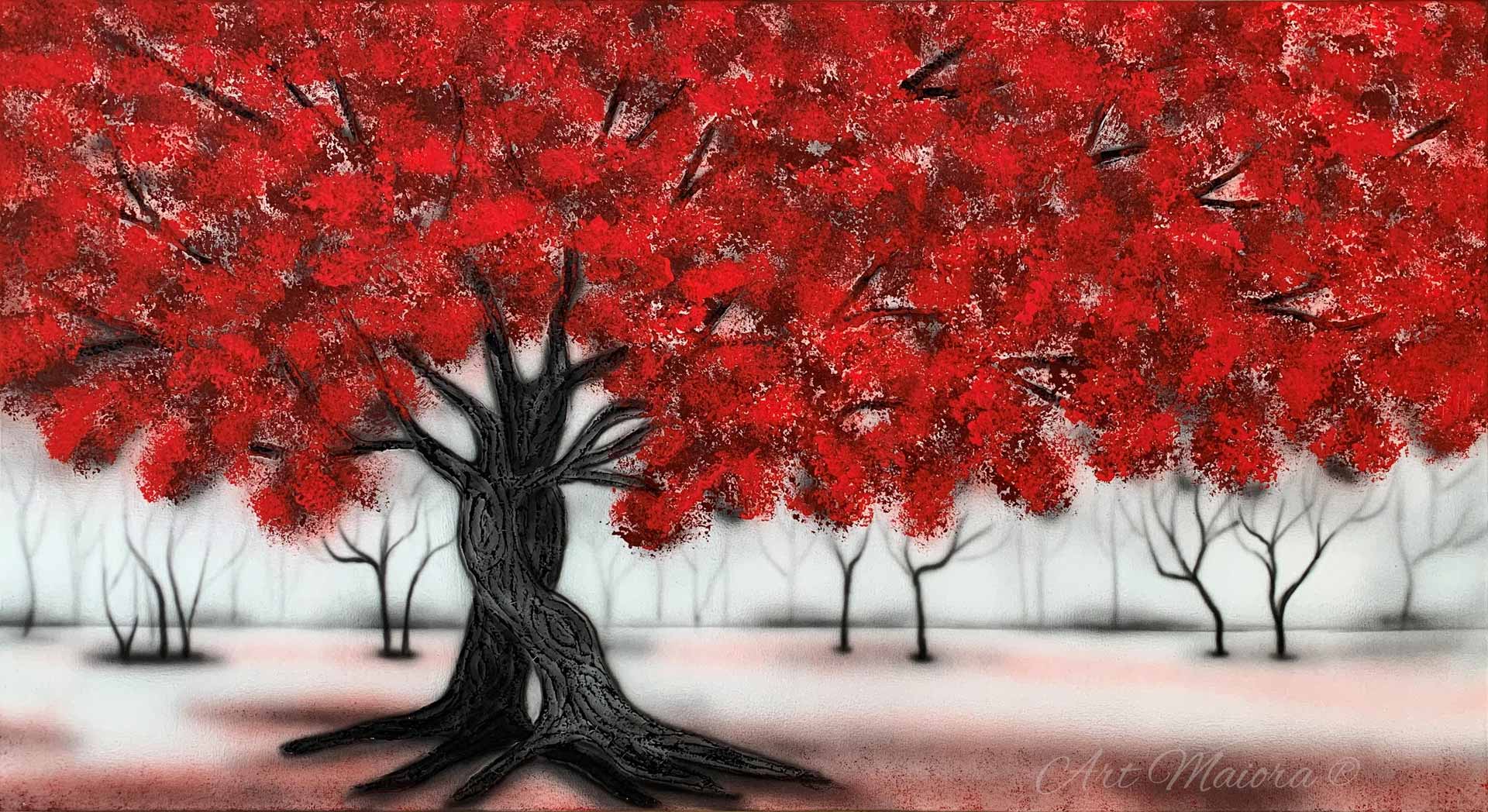 Quadro dipinto a mano “Intreccio”, 130x70cm, finitura rossa, senza cornice.