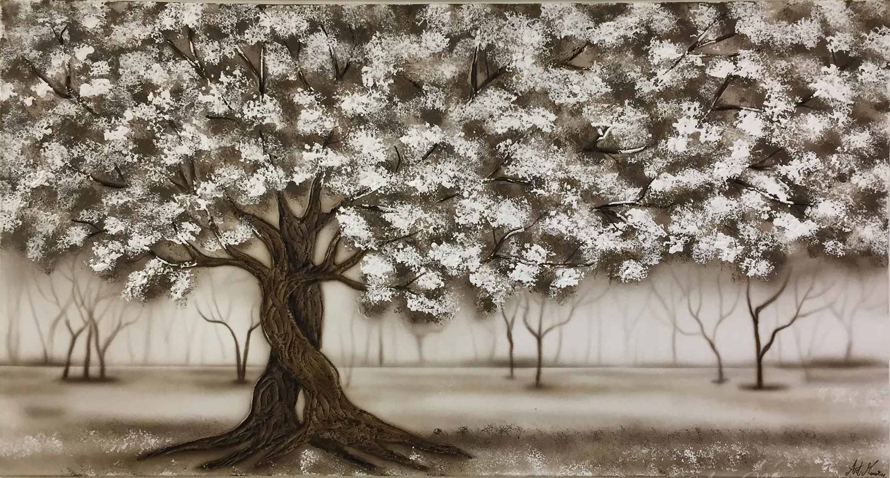 Quadro dipinto a mano “Intreccio”, 130x70cm, finitura biancao, senza cornice.