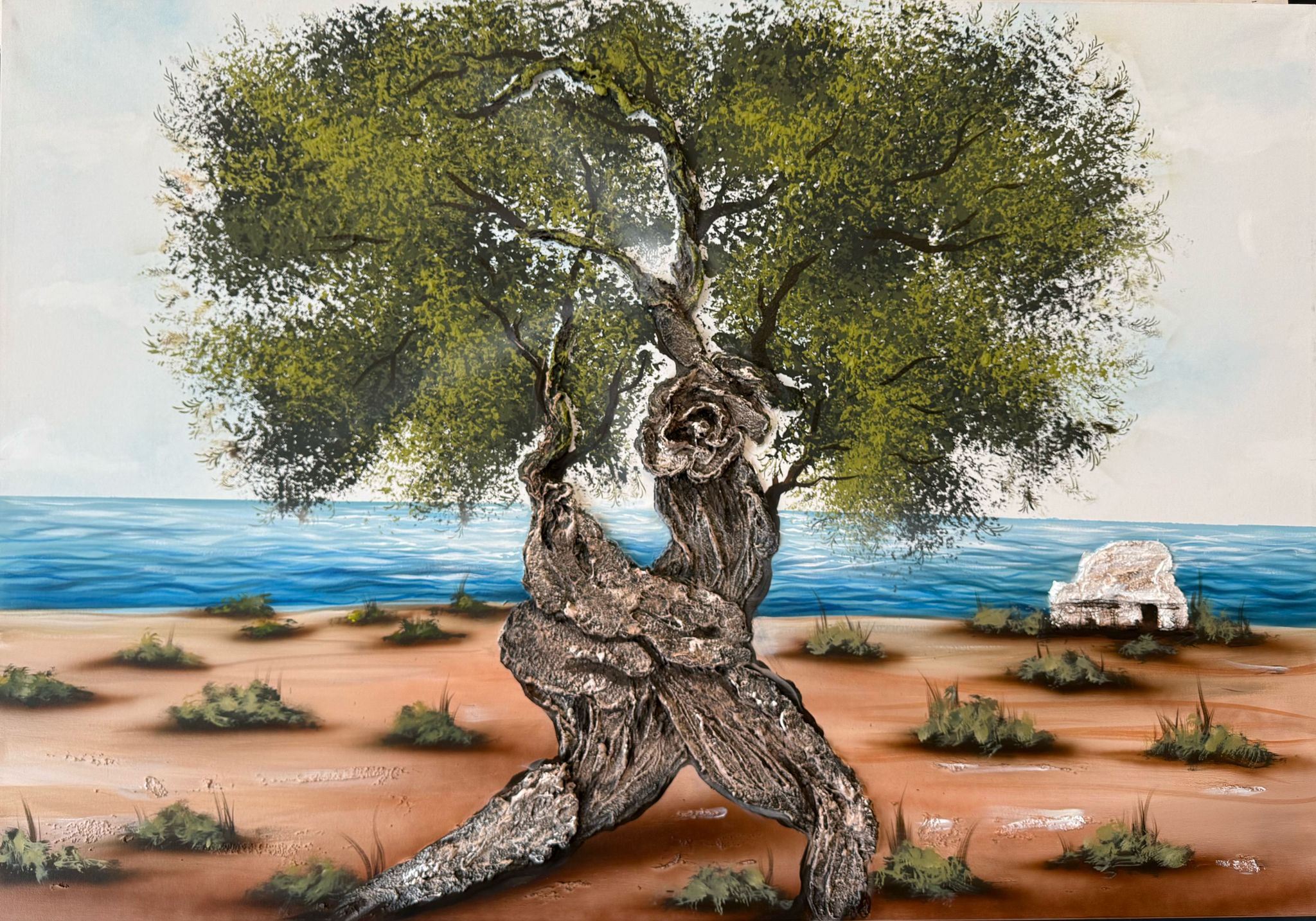 Quadro dipinto a mano “L Albero Del Mare”, 100x100cm, finitura tradizionale, senza cornice.