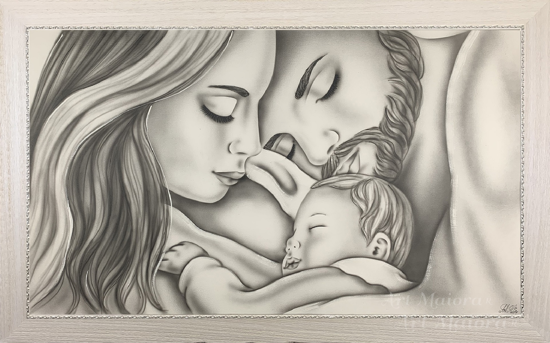 LEGAME DI VITA CON DIMENSIONE TELA DI 110 X 65 cm con FINITURA VARIANTE TORTORA in abbinamento la CORNICE CONTEMPORANEA ARGENTO. dipinto su tela realizzato a mano La dimensione finale del dipinto è 120 X 75 cm (larghezza x altezza)