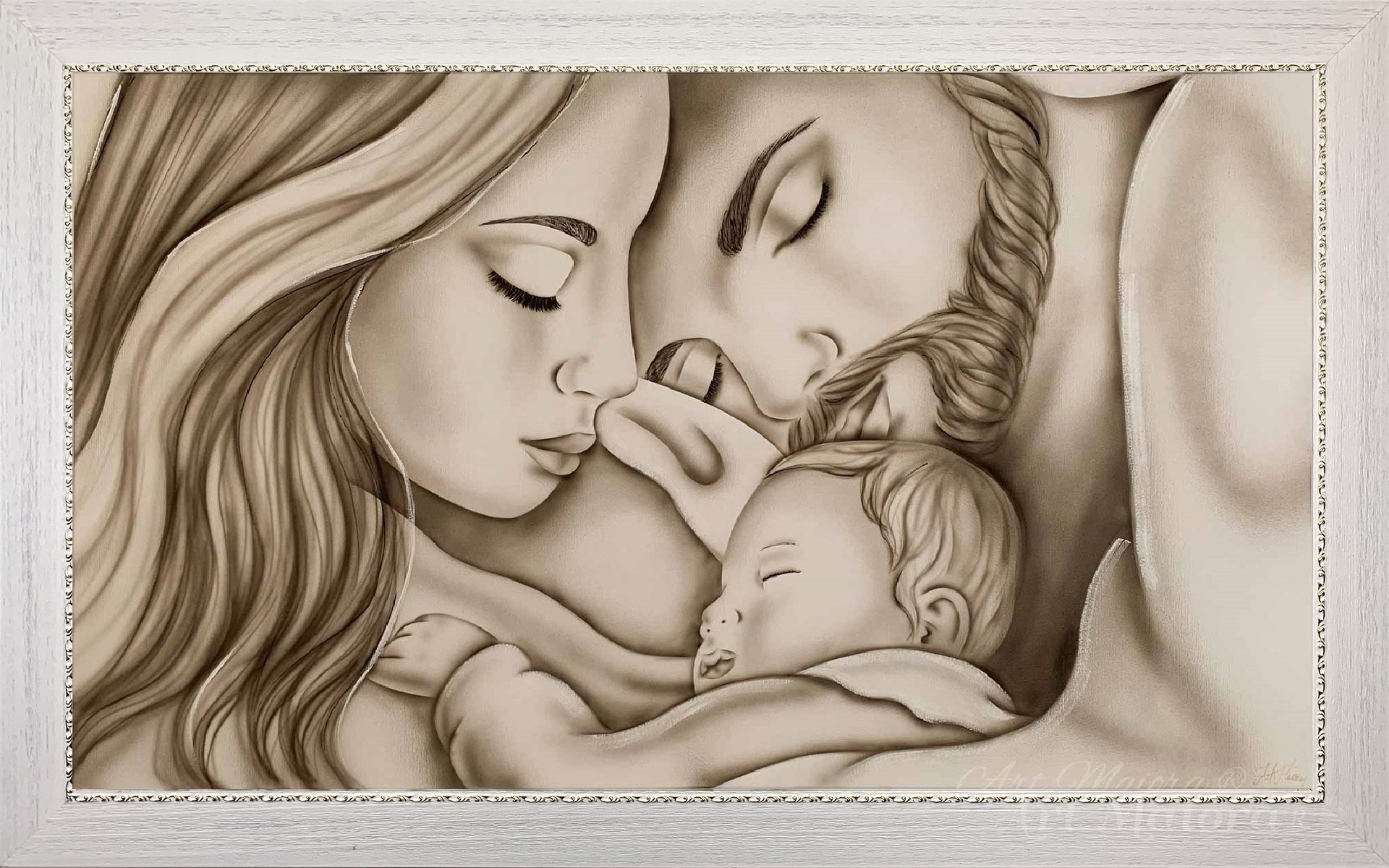 LEGAME DI VITA CON DIMENSIONE TELA DI 110 X 65 cm con FINITURA VARIANTE TORTORA CALDO in abbinamento la CORNICE CONTEMPORANEA ORO. dipinto su tela realizzato a mano La dimensione finale del dipinto è 120 X 75 cm (larghezza x altezza)