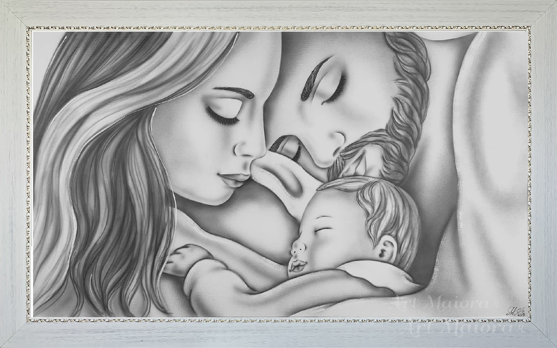 LEGAME DI VITA CON DIMENSIONE TELA DI 110 X 65 cm con FINITURA VARIANTE GRIGIO in abbinamento la CORNICE CONTEMPORANEA ORO. dipinto su tela realizzato a mano La dimensione finale del dipinto è 120 X 75 cm (larghezza x altezza)
