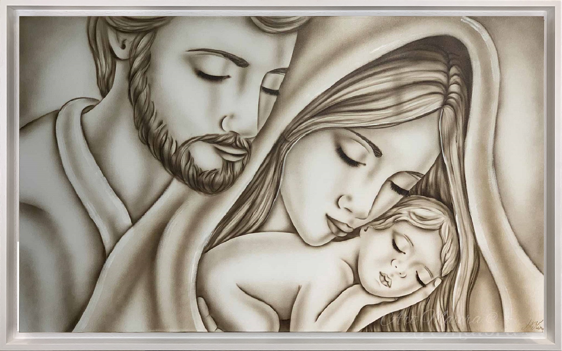 LETIZIA CON DIMENSIONE TELA DI 110 X 65 cm con FINITURA VARIANTE TORTORA CALDO E NOCCIOLA in abbinamento la CORNICE AD L BIANCA PORO APERTO. dipinto su tela realizzato a mano La dimensione finale del dipinto è 120 X 75 cm (larghezza x altezza)