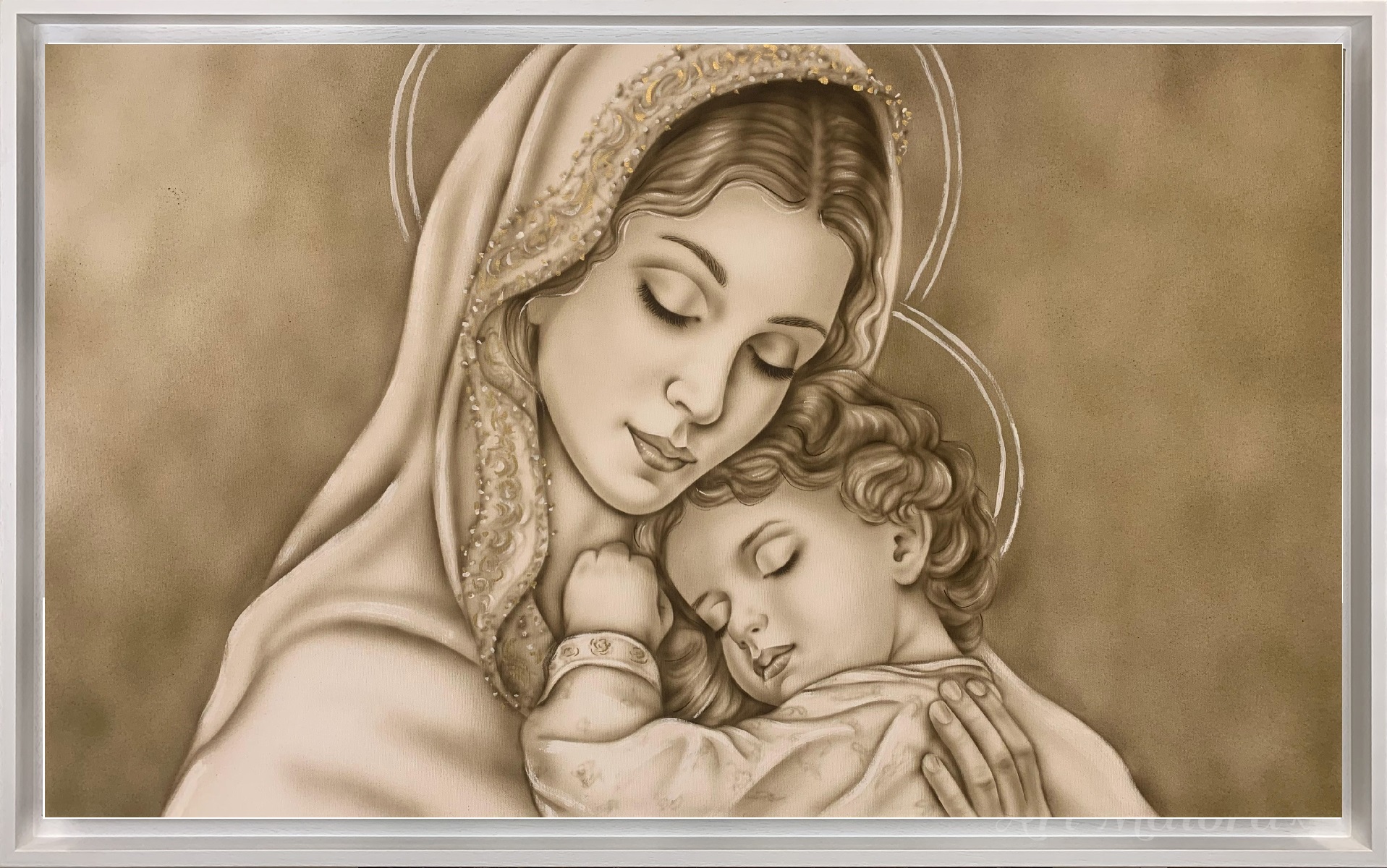 Art Maiora Luce Materna – Quadro con cornice dipinto a mano su tela 120X75 cm
