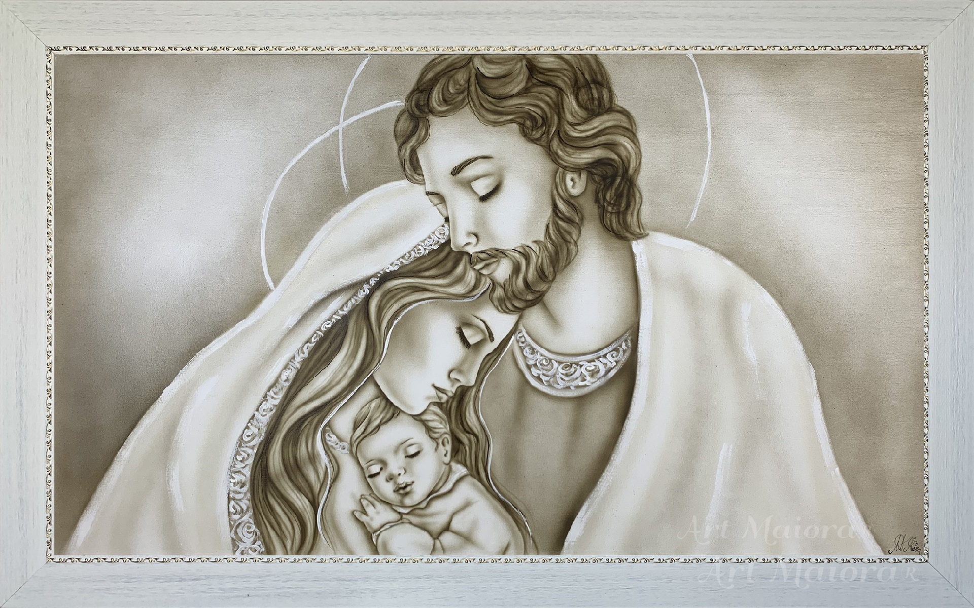 LUCE SACRA CON DIMENSIONE TELA DI 110 X 65 cm con FINITURA VARIANTE TORTORA CALDO in abbinamento la CORNICE CONTEMPORANEA ORO. dipinto su tela realizzato a mano La dimensione finale del dipinto è 120 X 75 cm (larghezza x altezza)