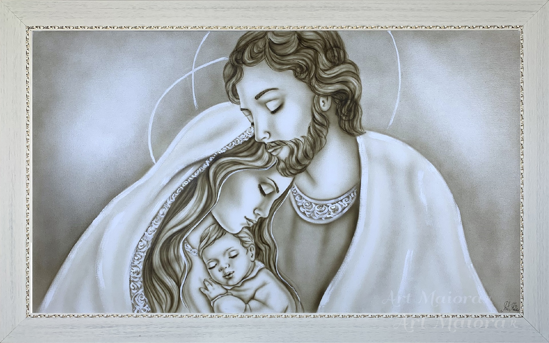 Art Maiora Luce Sacra – Quadro con cornice dipinto a mano su tela 120X75 cm