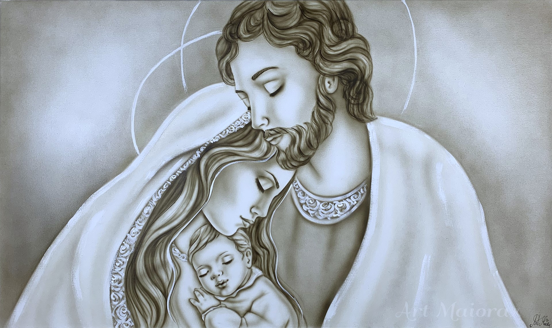 LUCE SACRA CON DIMENSIONE TELA DI 110 X 65 cm con FINITURA VARIANTE TORTORA Senza Cornice. dipinto su tela realizzato a mano
