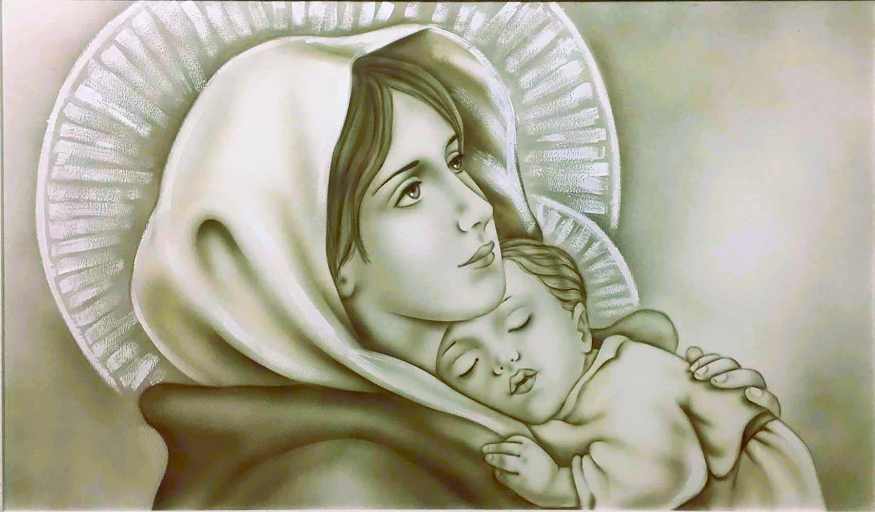 MADONNA DEL FERRUZZI CON DIMENSIONE TELA DI 110 X 65 cm con FINITURA VARIANTE TORTORA Senza Cornice. dipinto su tela realizzato a mano