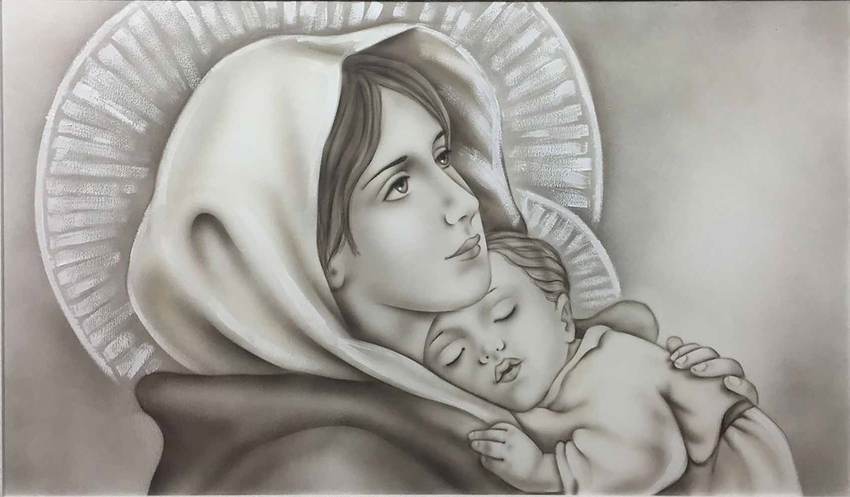 MADONNA DEL FERRUZZI CON DIMENSIONE TELA DI 110 X 65 cm con FINITURA VARIANTE GRIGIO Senza Cornice. dipinto su tela realizzato a mano