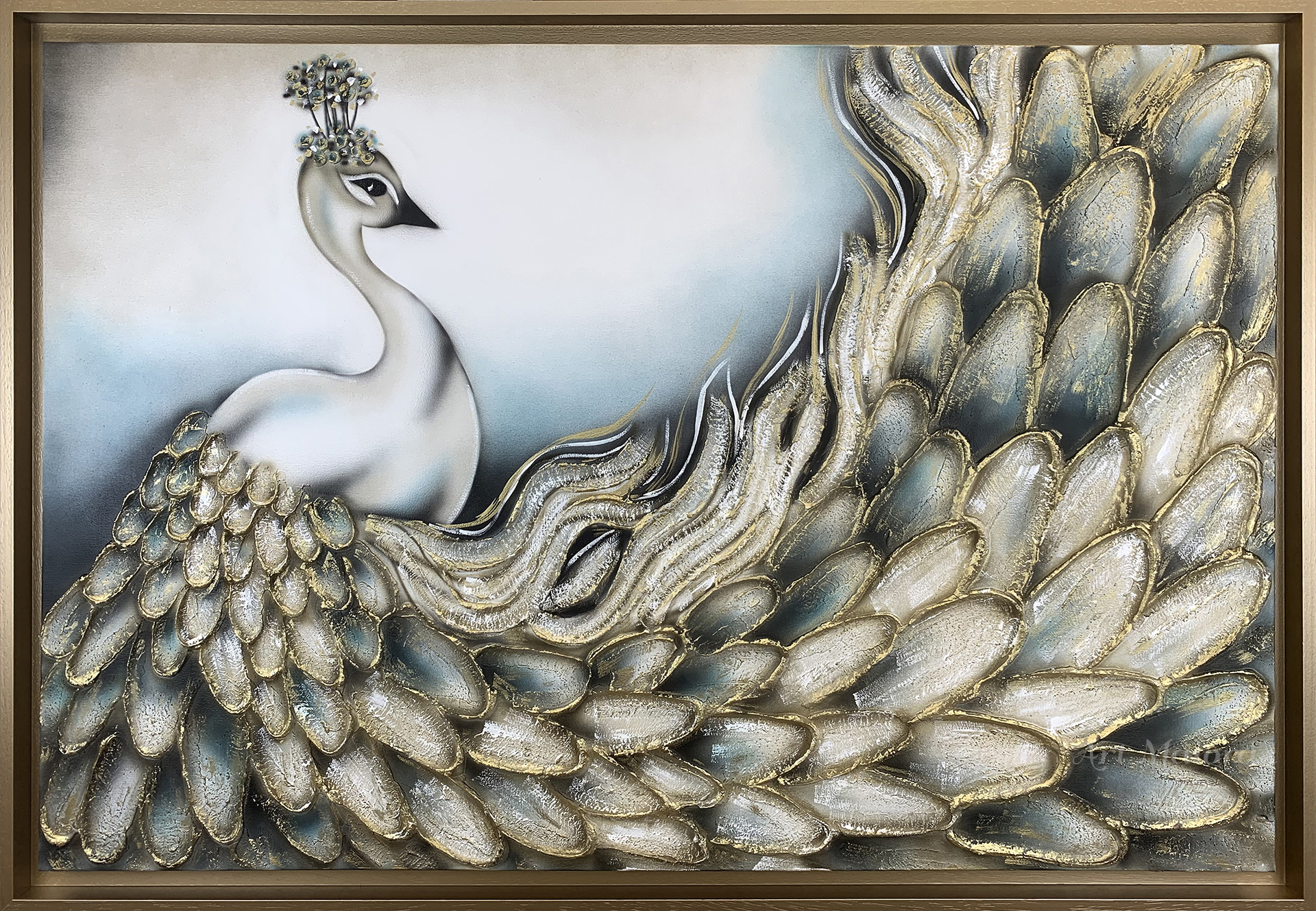NARCISO CON DIMENSIONE TELA DI 130 X 70 cm con VARIANTE PETROLIO CON FINITURA ORO VINTAGE in abbinamento la CORNICE AD L ORO VINTAGE. dipinto su tela realizzato a mano La dimensione finale del dipinto è 140 X 80 cm (larghezza x altezza)