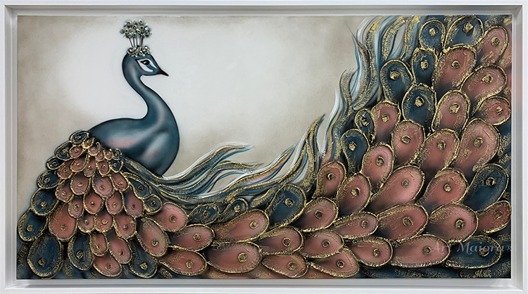 Quadro dipinto a mano “Narciso”, 160x90cm, cornice ad l bianca poro aperto.
