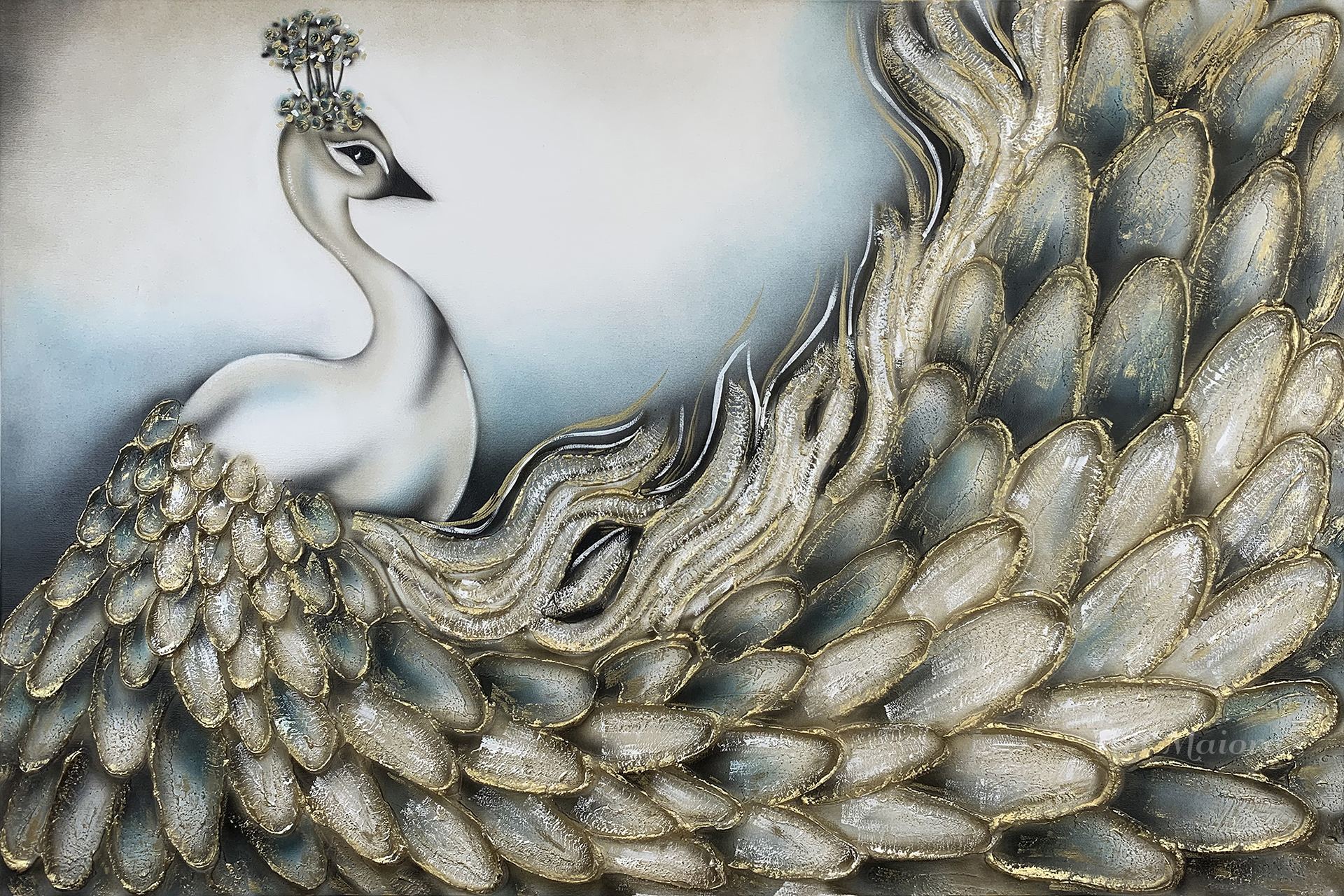 NARCISO CON DIMENSIONE TELA DI 130 X 70 cm con VARIANTE PETROLIO CON FINITURA ORO VINTAGE Senza Cornice. dipinto su tela realizzato a mano