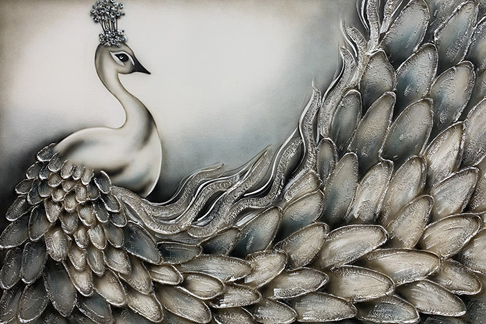 NARCISO CON DIMENSIONE TELA DI 150 X 80 cm con VARIANTE PETROLIO CON FINITURA ARGENTO Senza Cornice. dipinto su tela realizzato a mano