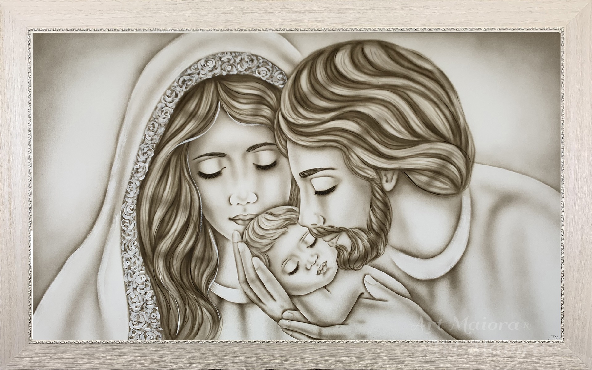 NIDO D AMORE ROMANTICO CON DIMENSIONE TELA DI 110 X 65 cm con FINITURA VARIANTE TORTORA CALDO in abbinamento la CORNICE CONTEMPORANEA ARGENTO. dipinto su tela realizzato a mano La dimensione finale del dipinto è 120 X 75 cm (larghezza x altezza)