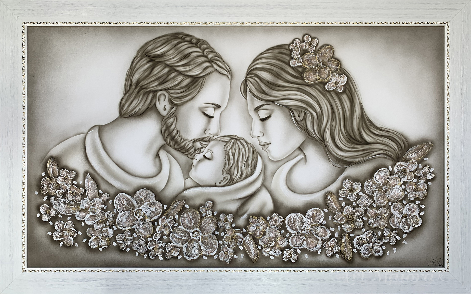 NON TI SCORDAR DI ME CON DIMENSIONE TELA DI 110 X 65 cm con FINITURA VARIANTE TORTORA E DECORI BIANCHI E ORO in abbinamento la CORNICE CONTEMPORANEA ORO. dipinto su tela realizzato a mano La dimensione finale del dipinto è 120 X 75 cm (larghezza x altezza)
