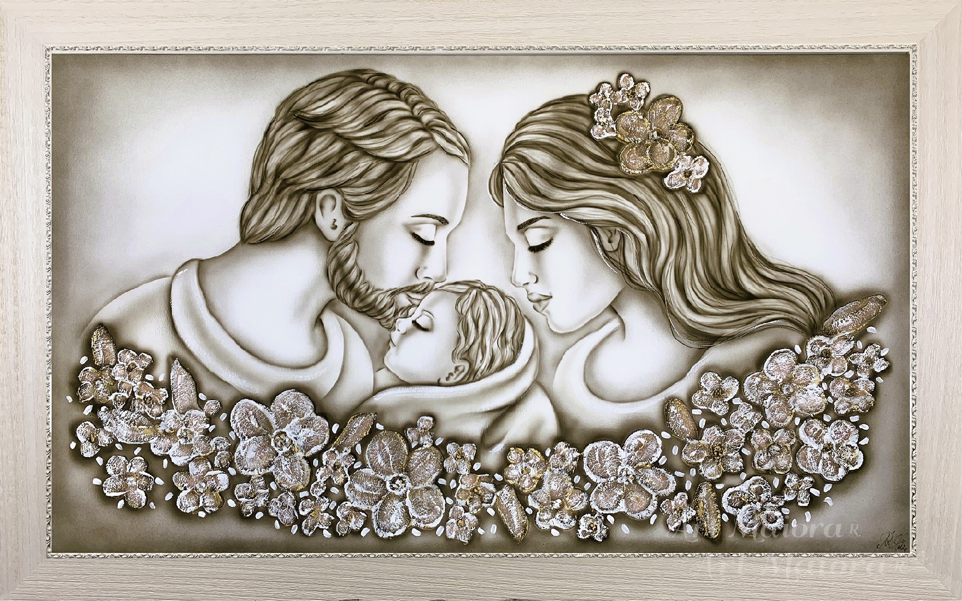 NON TI SCORDAR DI ME CON DIMENSIONE TELA DI 110 X 65 cm con FINITURA VARIANTE TORTORA CALDO CON DECORI BIANCHI E ORO in abbinamento la CORNICE CONTEMPORANEA ARGENTO. dipinto su tela realizzato a mano La dimensione finale del dipinto è 120 X 75 cm (larghezza x altezza)