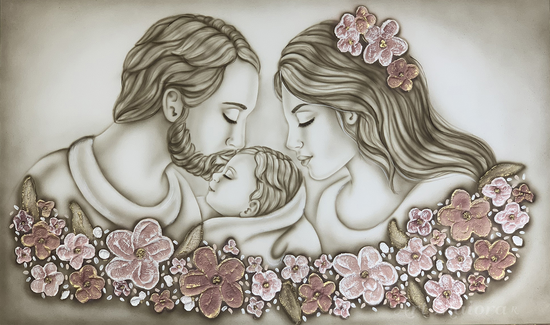 NON TI SCORDAR DI ME CON DIMENSIONE TELA DI 110 X 65 cm con FINITURA VARIANTE TORTORA E DECORI ROSA Senza Cornice. dipinto su tela realizzato a mano