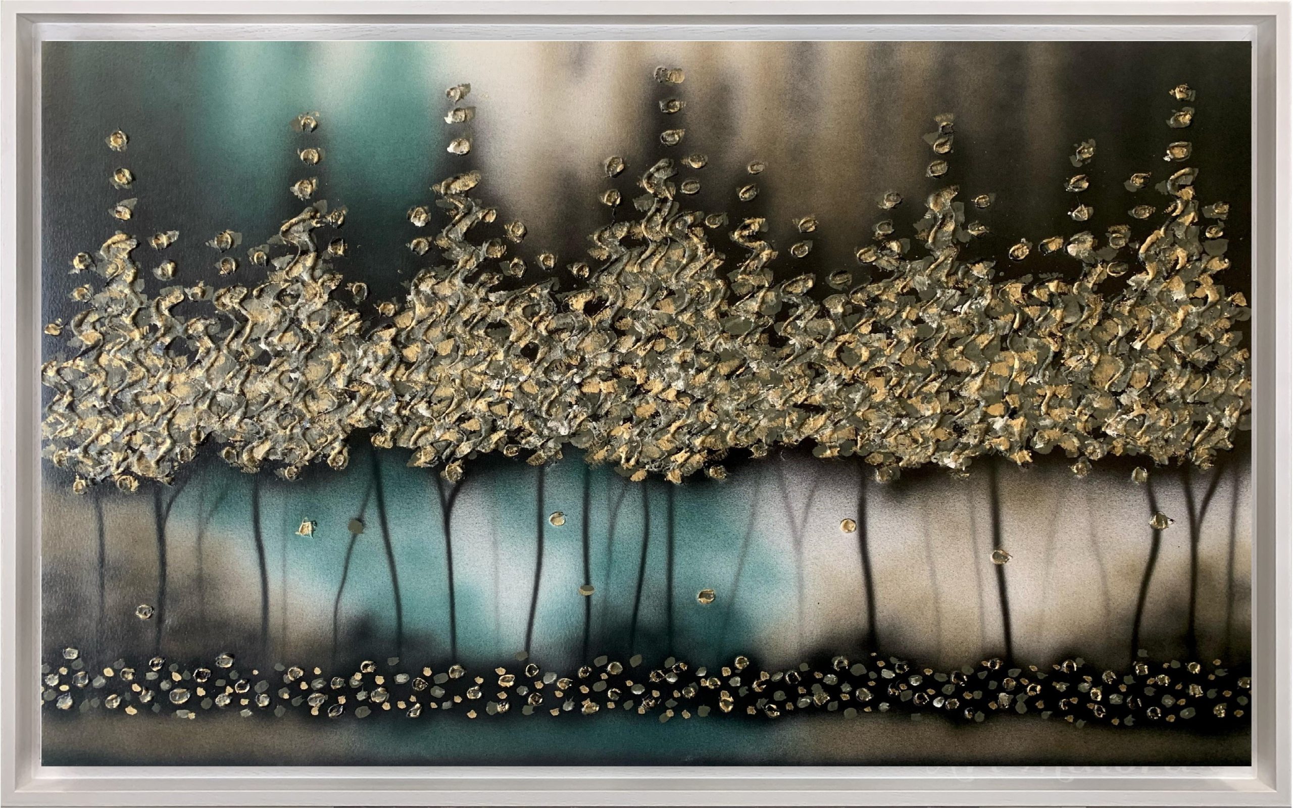 Quadro dipinto a mano “Notte Romantica”, 130x90cm, cornice ad l bianca poro aperto.