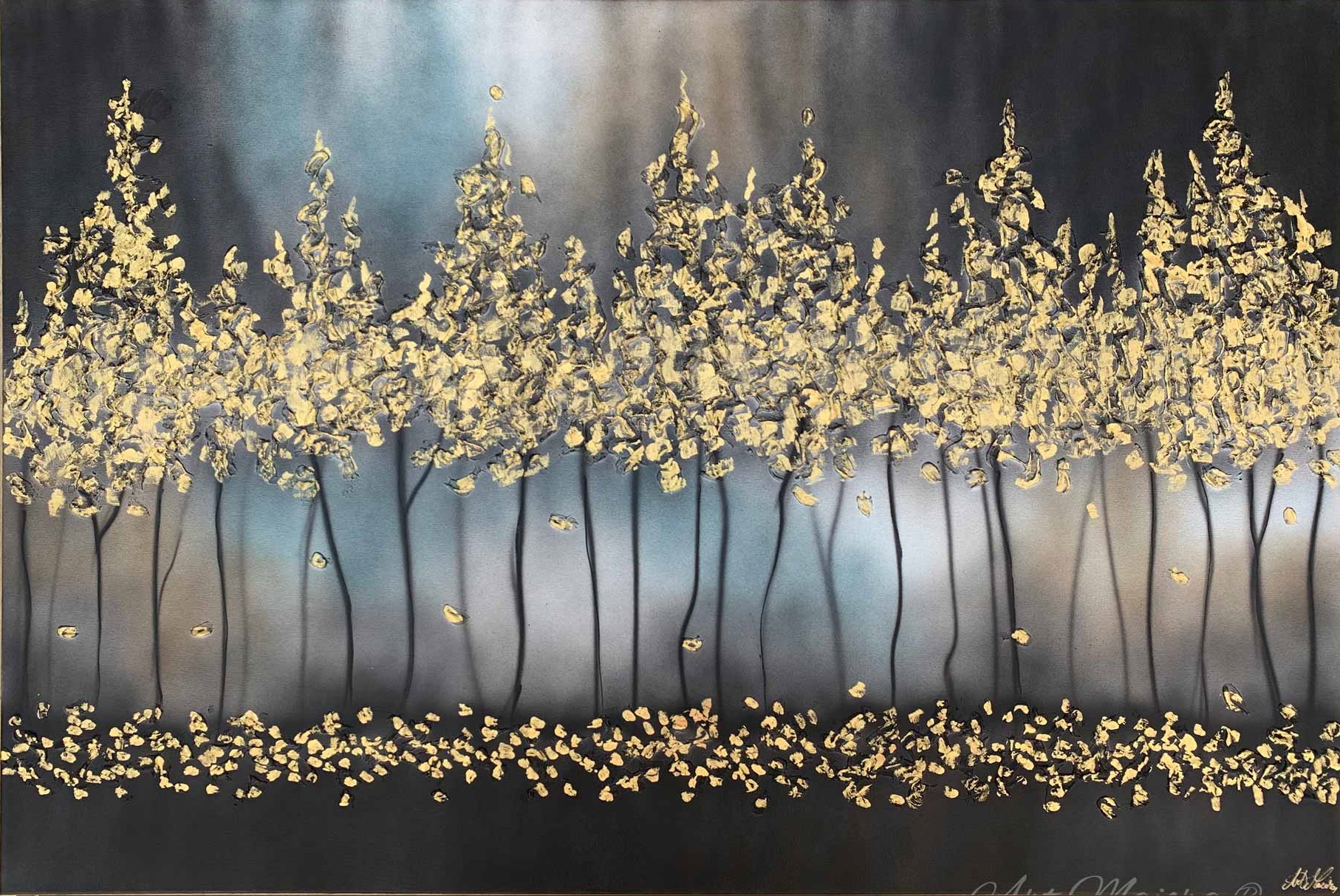 Quadro dipinto a mano “Notte Romantica”, 120x80cm, finitura silver, senza cornice.