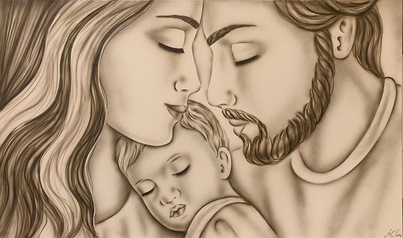 PER SEMPRE CON DIMENSIONE TELA DI 110 X 65 cm con FINITURA VARIANTE TORTORA Senza Cornice. dipinto su tela realizzato a mano