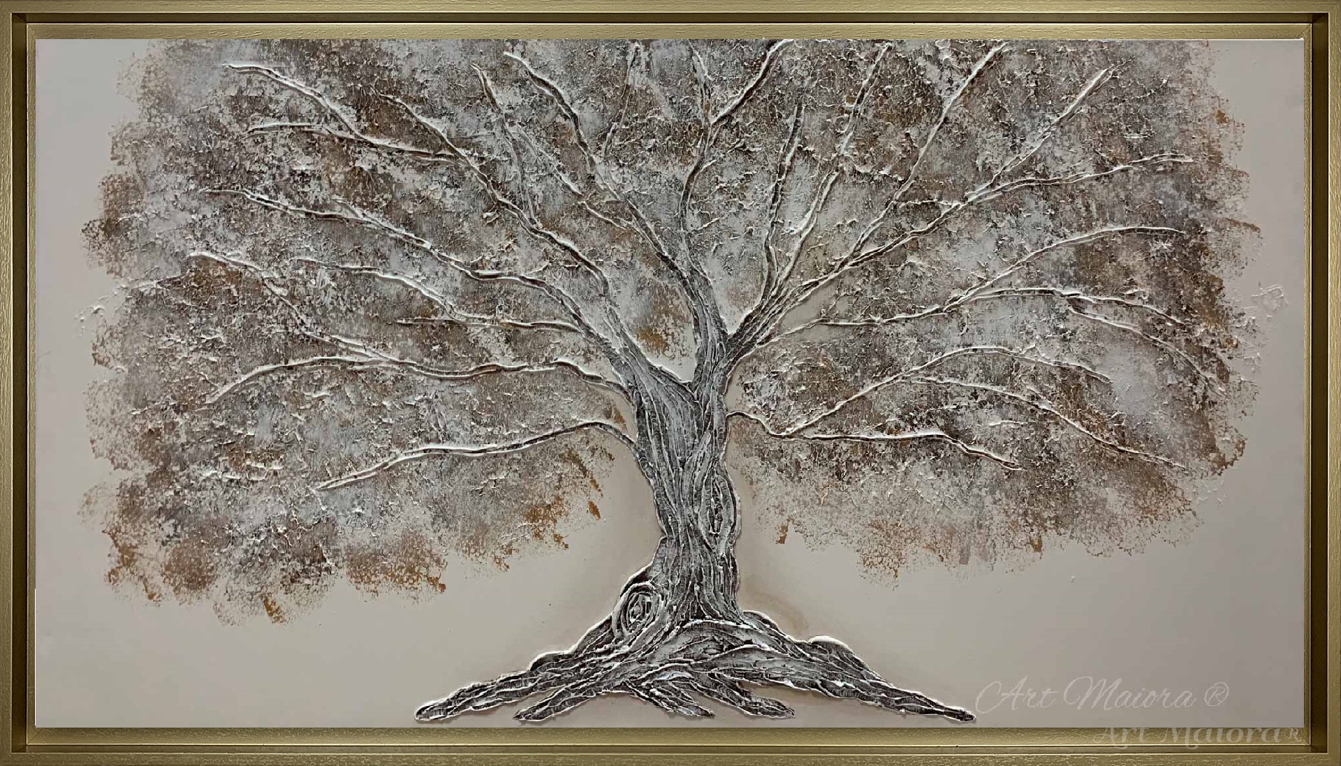 QUERCIA CON DIMENSIONE TELA DI 150 X 80 cm con FINITURA VARIANTE BIANCAO in abbinamento la CORNICE AD L ORO VINTAGE. dipinto su tela realizzato a mano La dimensione finale del dipinto è 160 X 90 cm (larghezza x altezza)