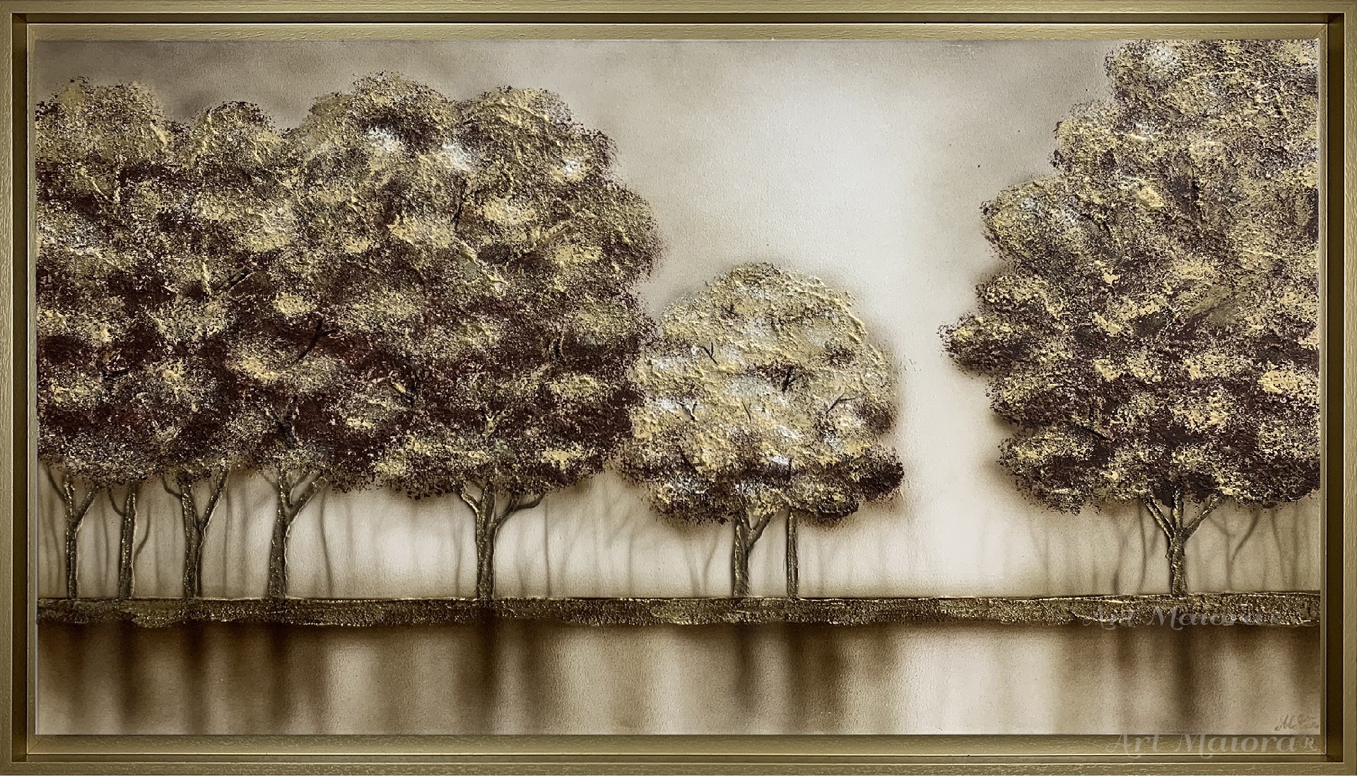 RIFLESSI NEW CON DIMENSIONE TELA DI 150 X 80 cm con FINITURA VARIANTE PANNA E ORO in abbinamento la CORNICE AD L ORO VINTAGE. dipinto su tela realizzato a mano La dimensione finale del dipinto è 160 X 90 cm (larghezza x altezza)