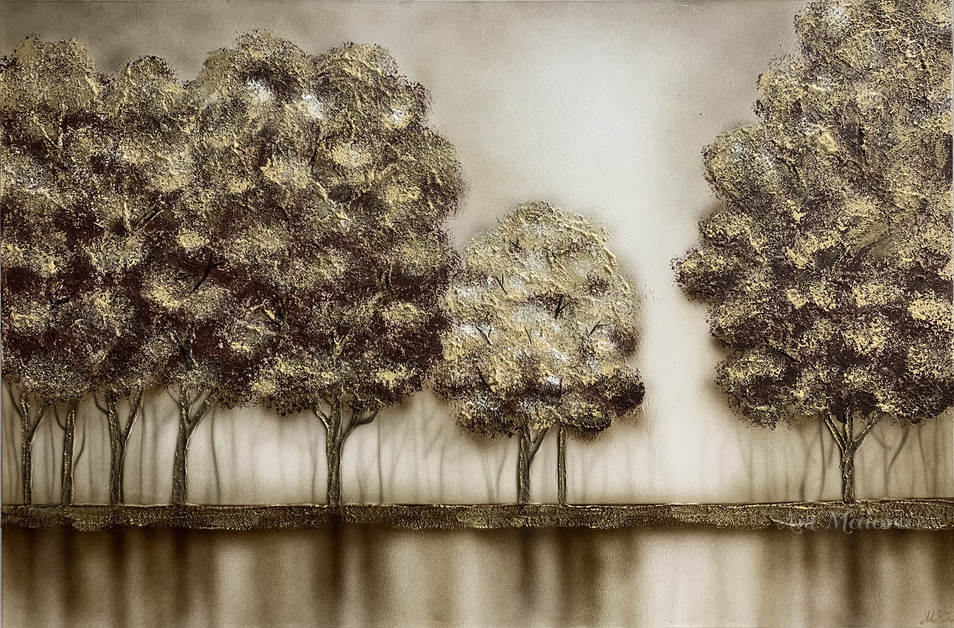 RIFLESSI NEW CON DIMENSIONE TELA DI 150 X 80 cm con FINITURA VARIANTE PANNA E ORO Senza Cornice. dipinto su tela realizzato a mano
