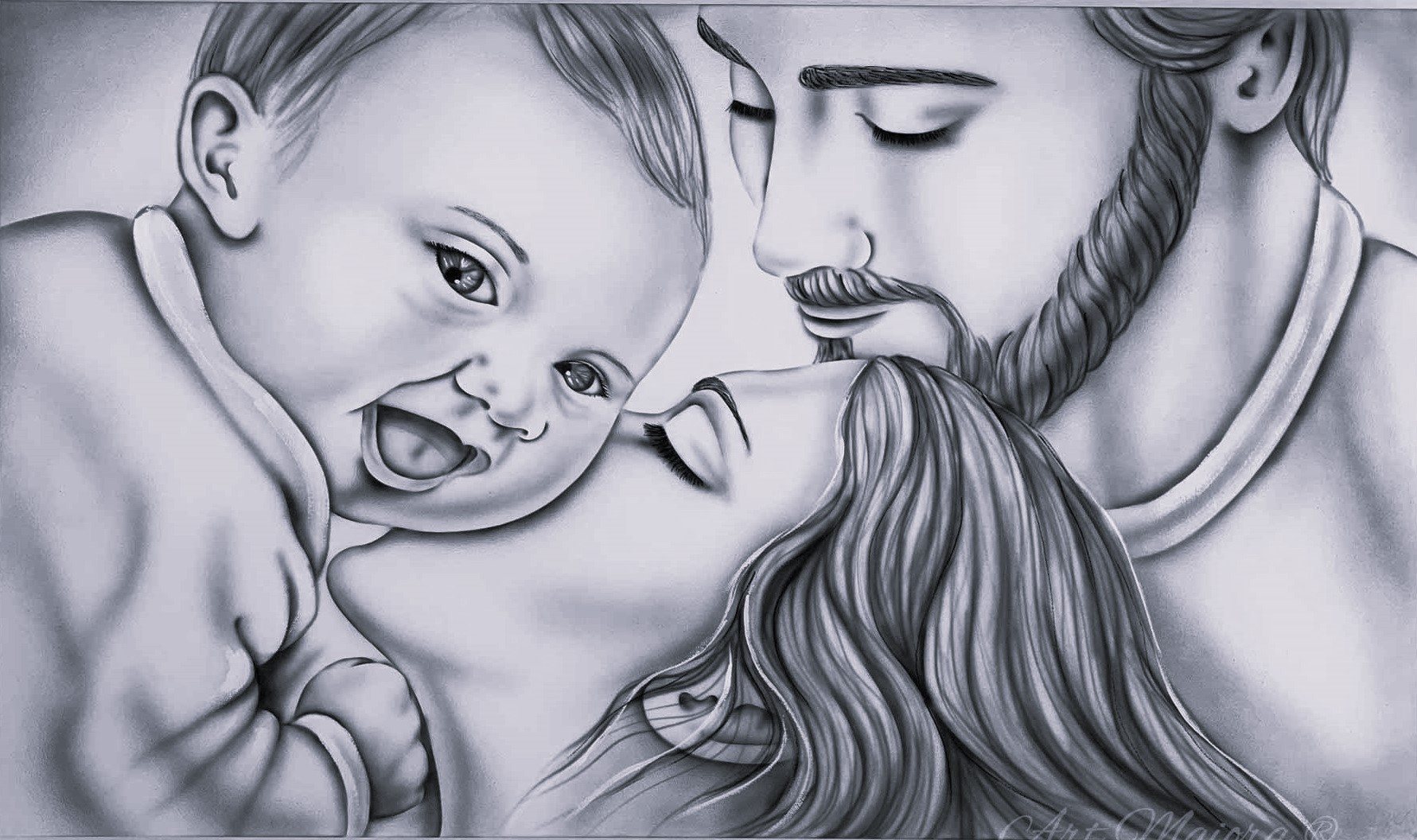SACRA FAMIGLIA GAIA CON DIMENSIONE TELA DI 110 X 65 cm con FINITURA VARIANTE GRIGIO Senza Cornice. dipinto su tela realizzato a mano