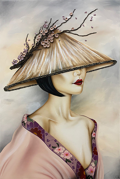 SERIE DONNE: TOKYO CON DIMENSIONE TELA DI 150 X 100 cm con FINITURA VARIANTE PINK Senza Cornice. dipinto su tela realizzato a mano