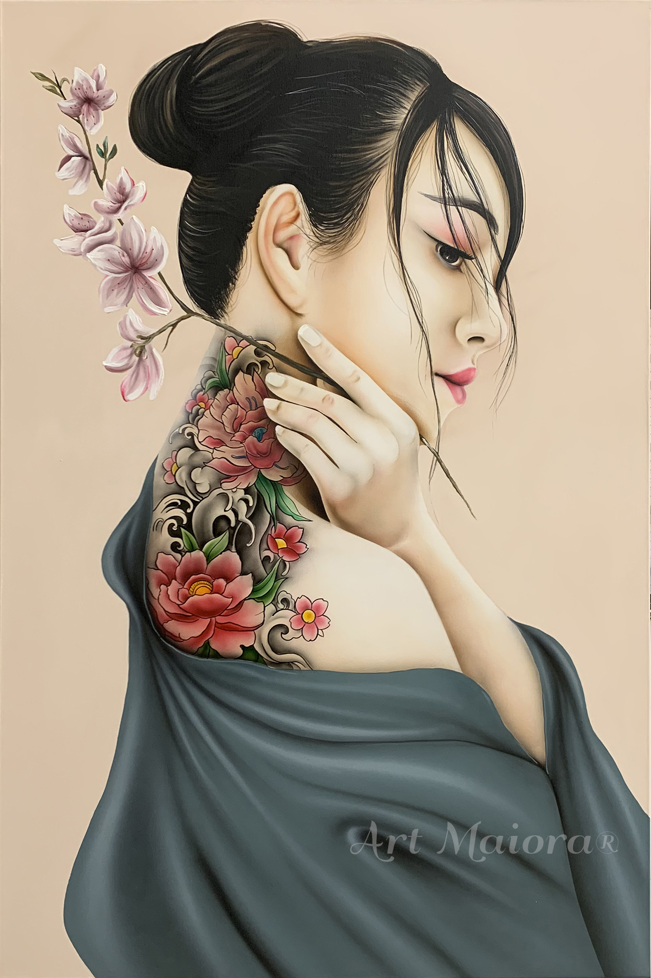 SERIE DONNE: YUMA CON DIMENSIONE TELA DI 150 X 100 cm con FINITURA (GRAZIOSA BALLERINA) VARIANTE TATOO POLICROMO E DECORI DIPINTI Senza Cornice. dipinto su tela realizzato a mano