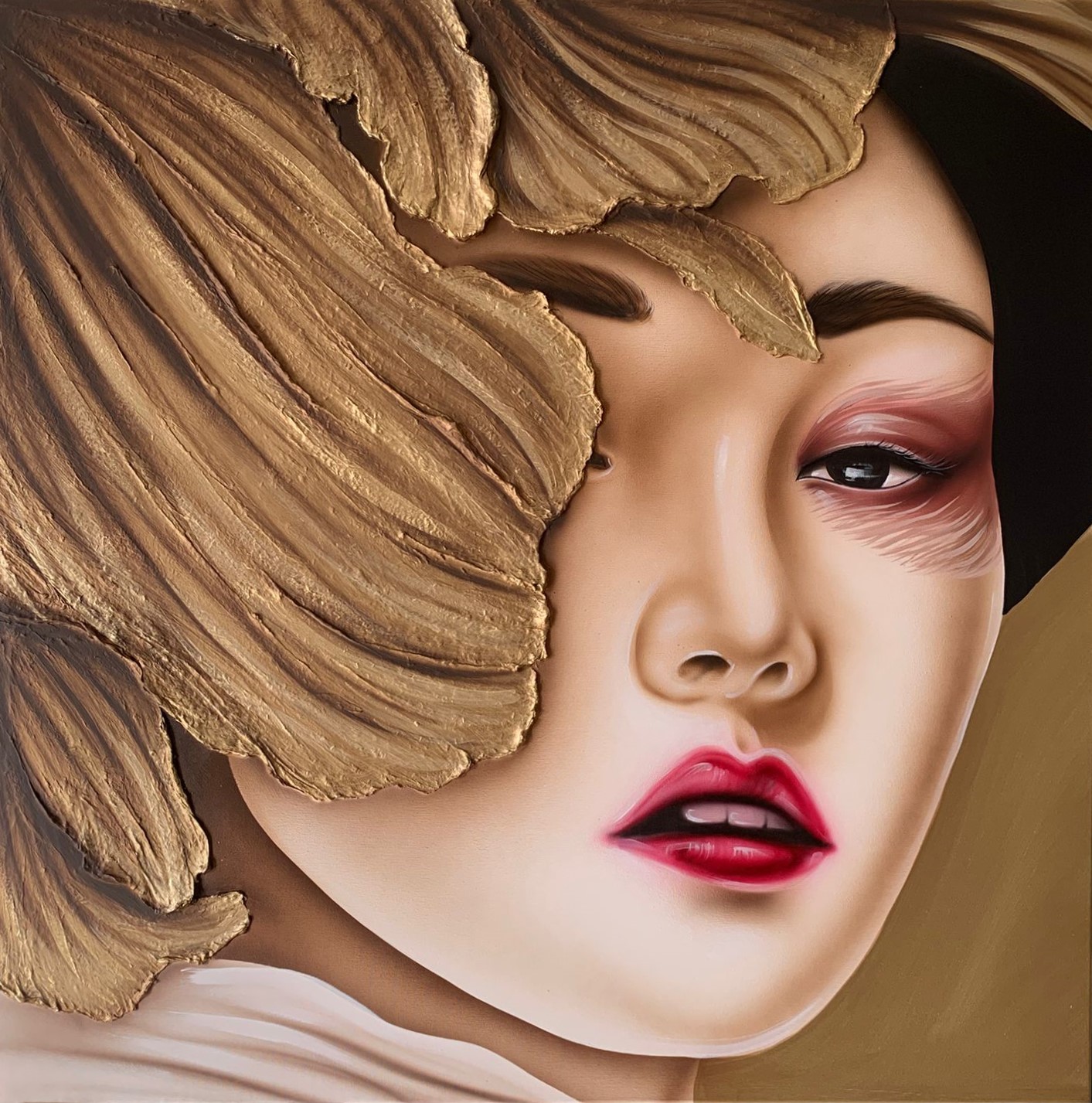 Quadro dipinto a mano “Sguardo Fiorito”, 100x100cm, finitura a colori, senza cornice.