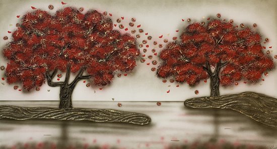 Quadro dipinto a mano “Soffio”, 150x80cm, finitura rosso, senza cornice.