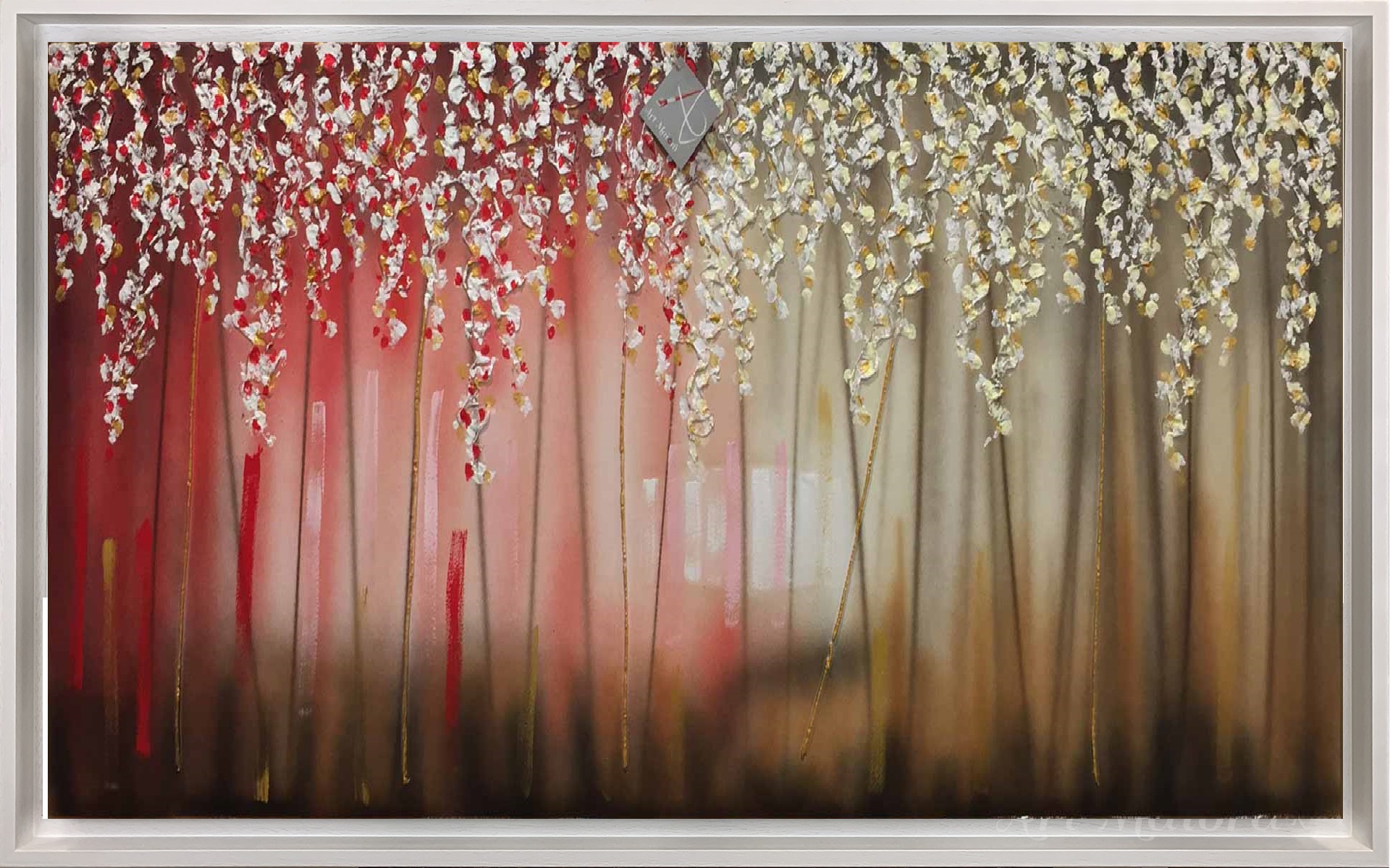 Quadro dipinto a mano “Sogno”, 140x80cm, finitura rosso, cornice ad l bianca poro aperto.