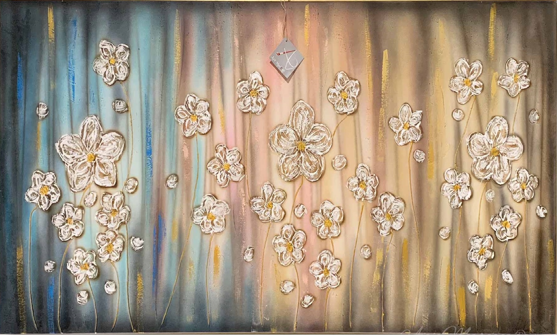 Quadro dipinto a mano “Sogno”, 150x100cm, finitura floreale, senza cornice.