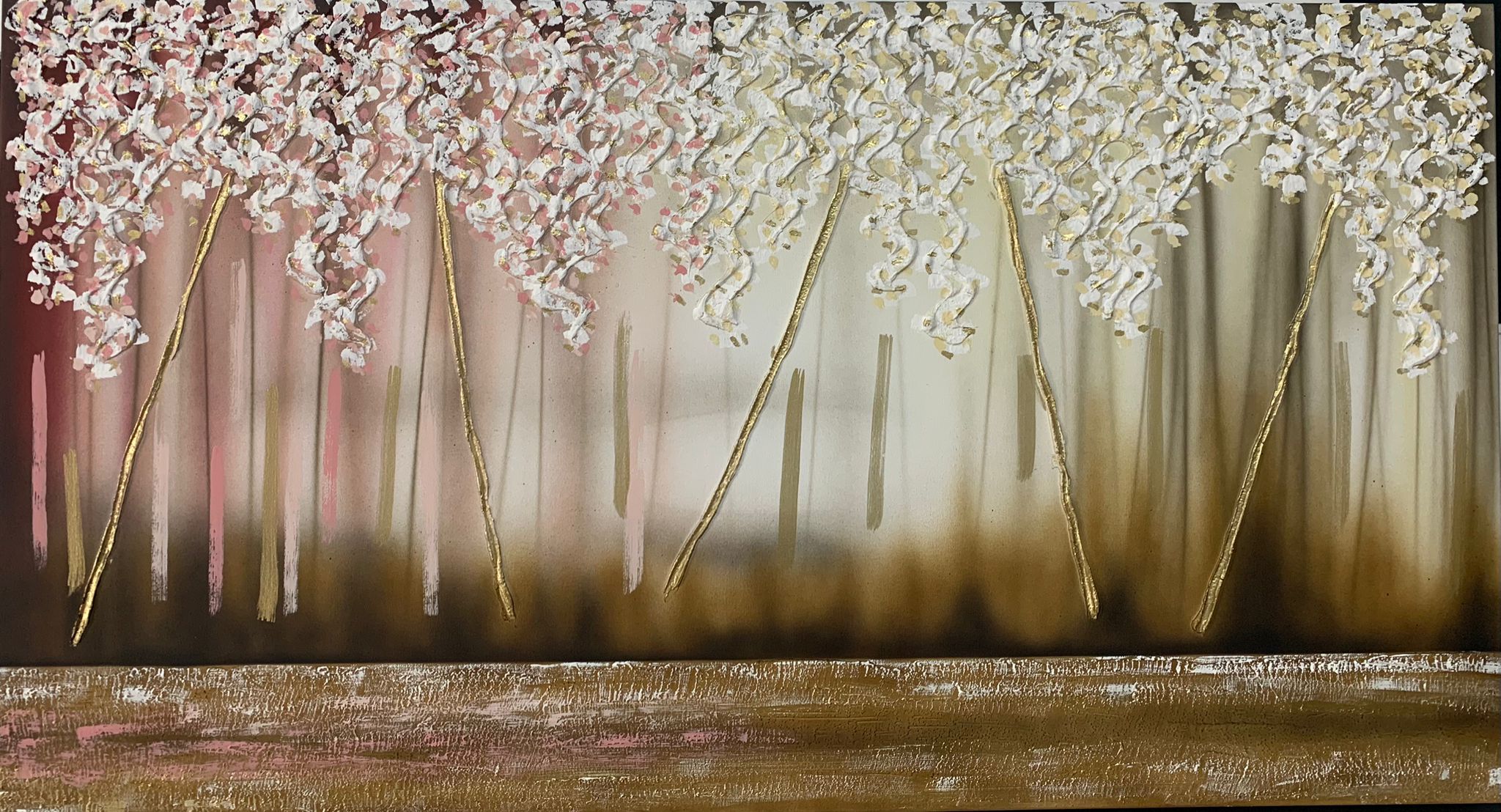 Quadro dipinto a mano “Sogno”, 150x80cm, finitura rosa e avorio, senza cornice.
