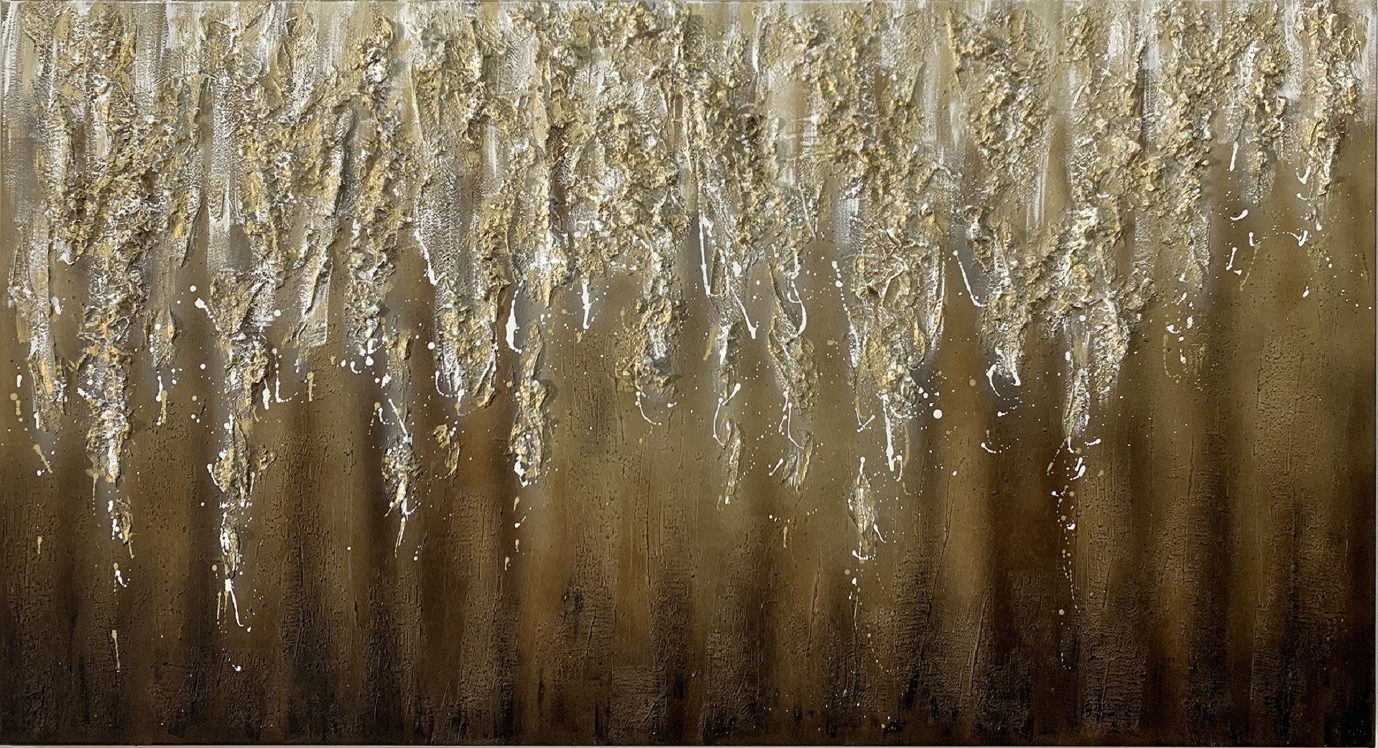 SPLENDORE GOLD CON DIMENSIONE TELA DI 150 X 80 cm con FINITURA VARIANTE BROWN Senza Cornice. dipinto su tela realizzato a mano