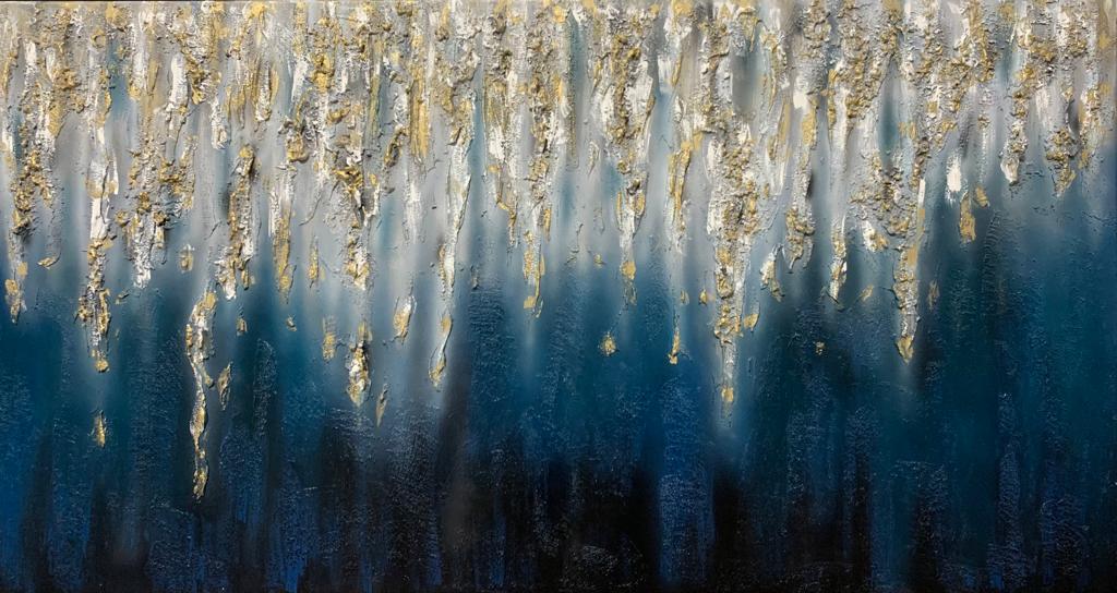 SPLENDORE OTTANIO CON DIMENSIONE TELA DI 130 X 70 cm con FINITURA VARIANTE BLUE E ORO Senza Cornice. dipinto su tela realizzato a mano