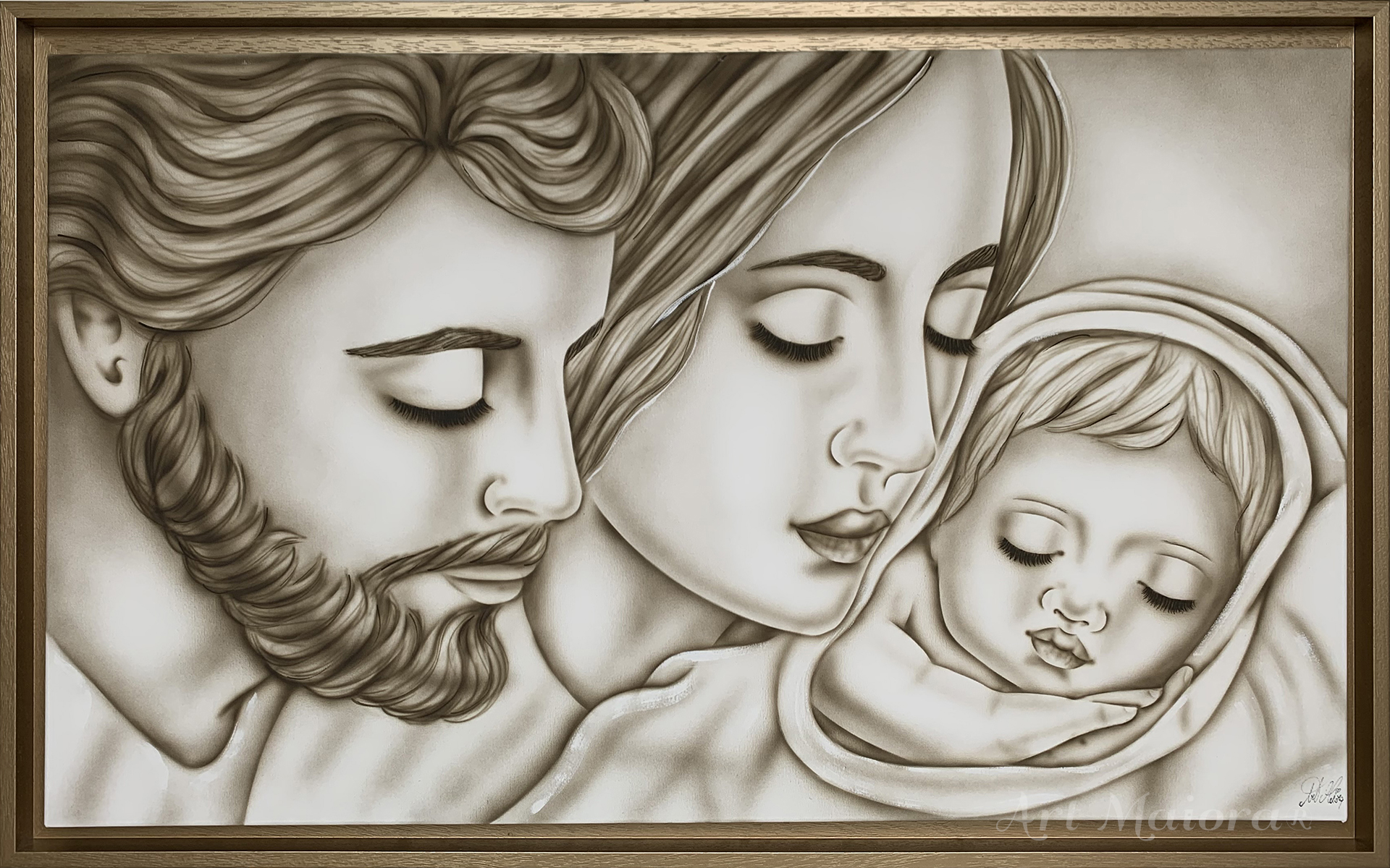 Art Maiora Tenerezza – Quadro con cornice dipinto a mano su tela 120X75 cm